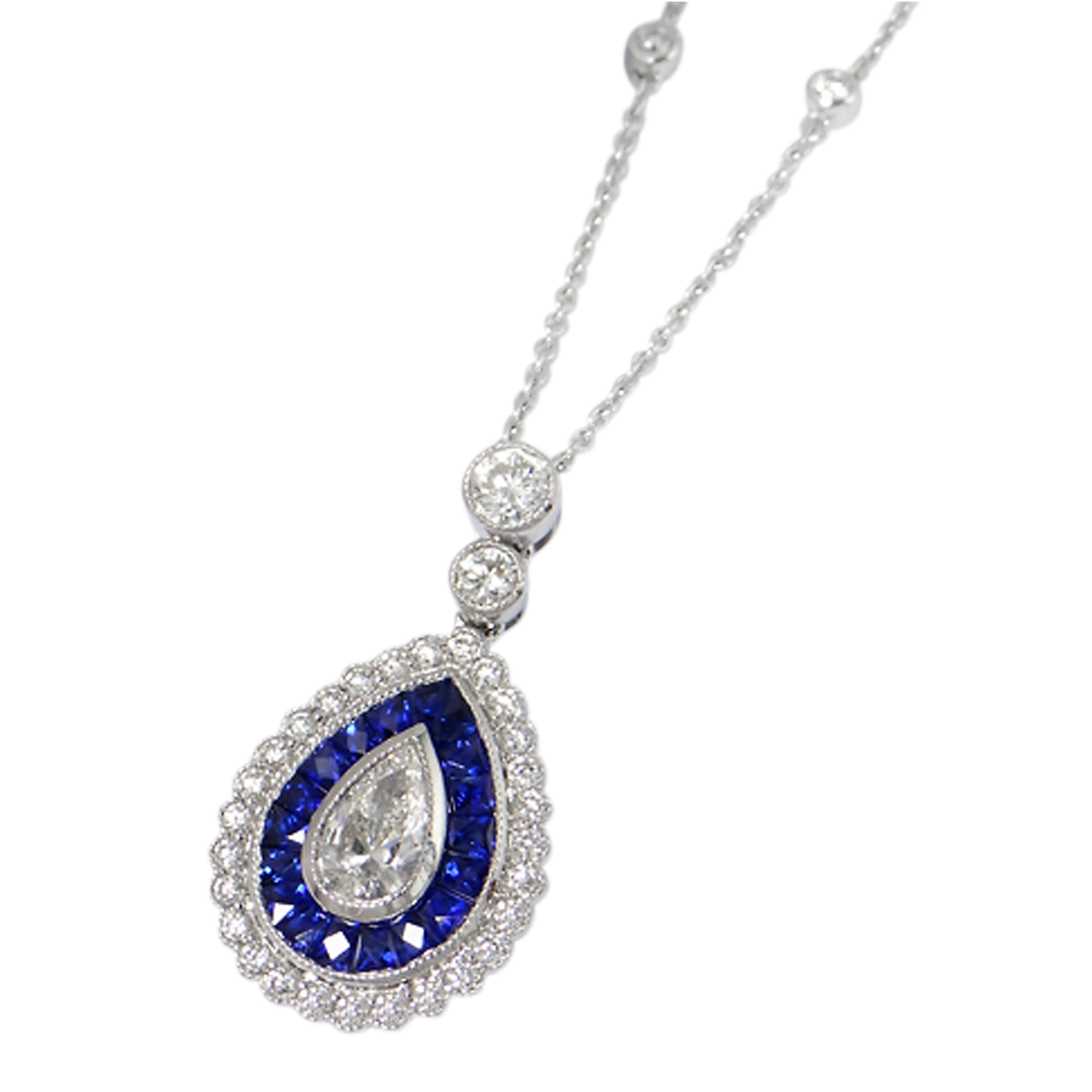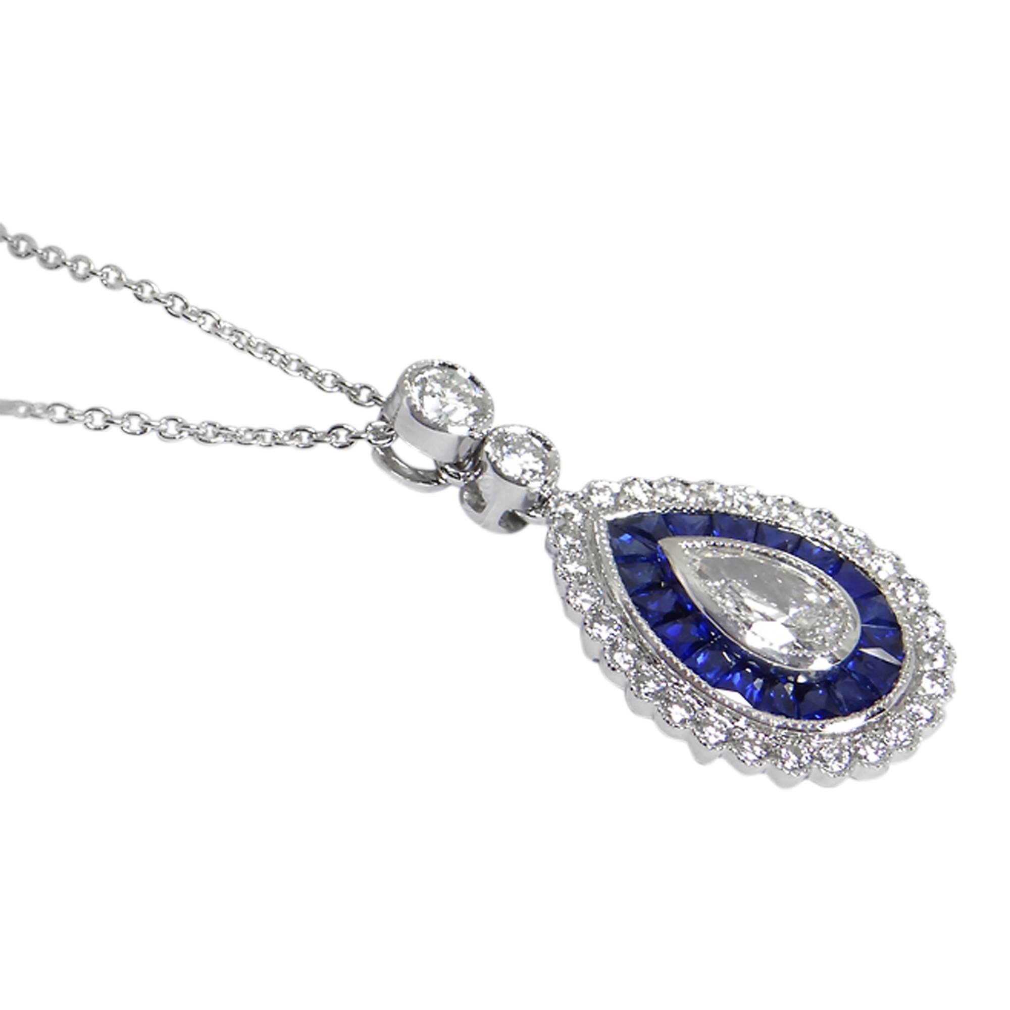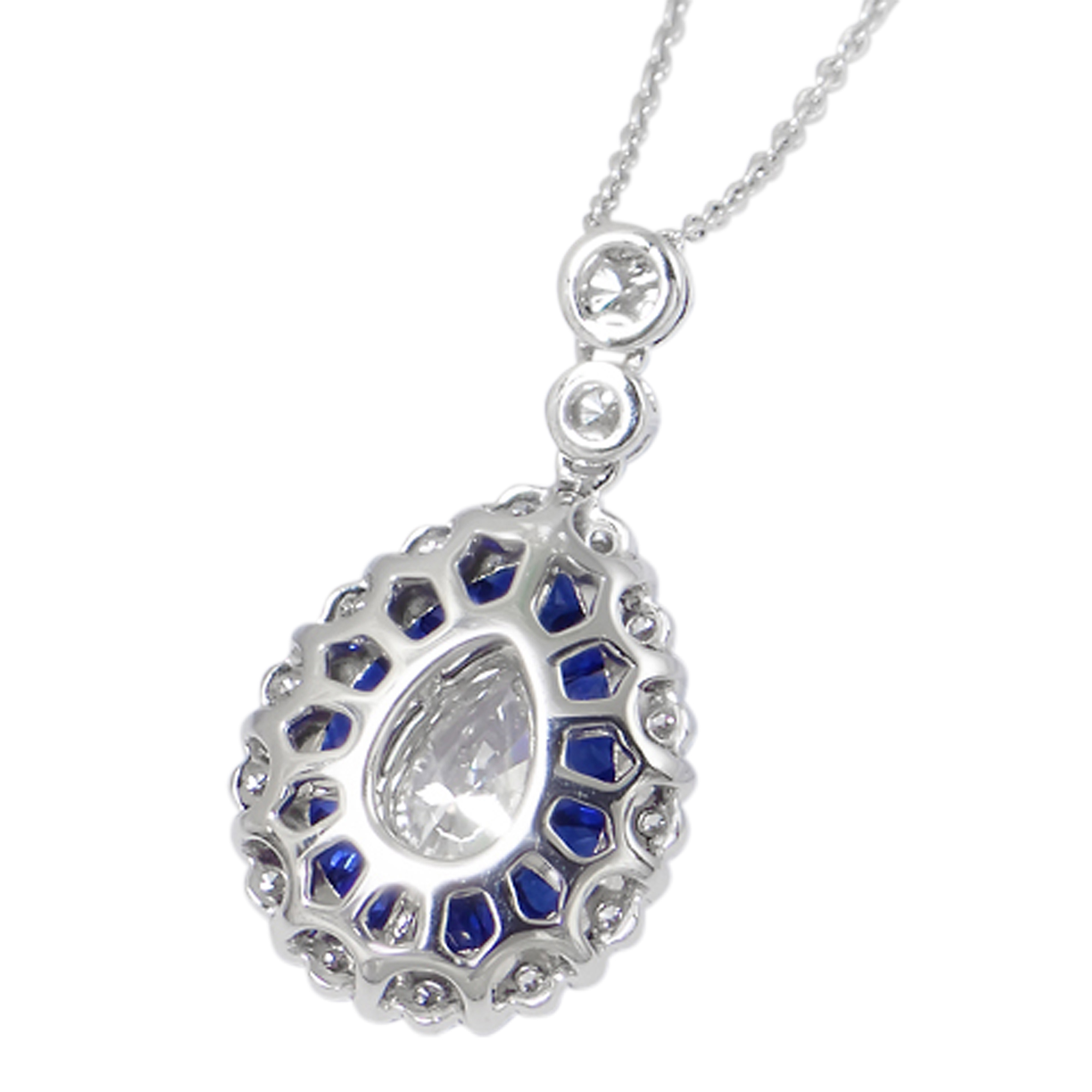 18ct White Gold Sapphire & Diamond Pendant, incl chain