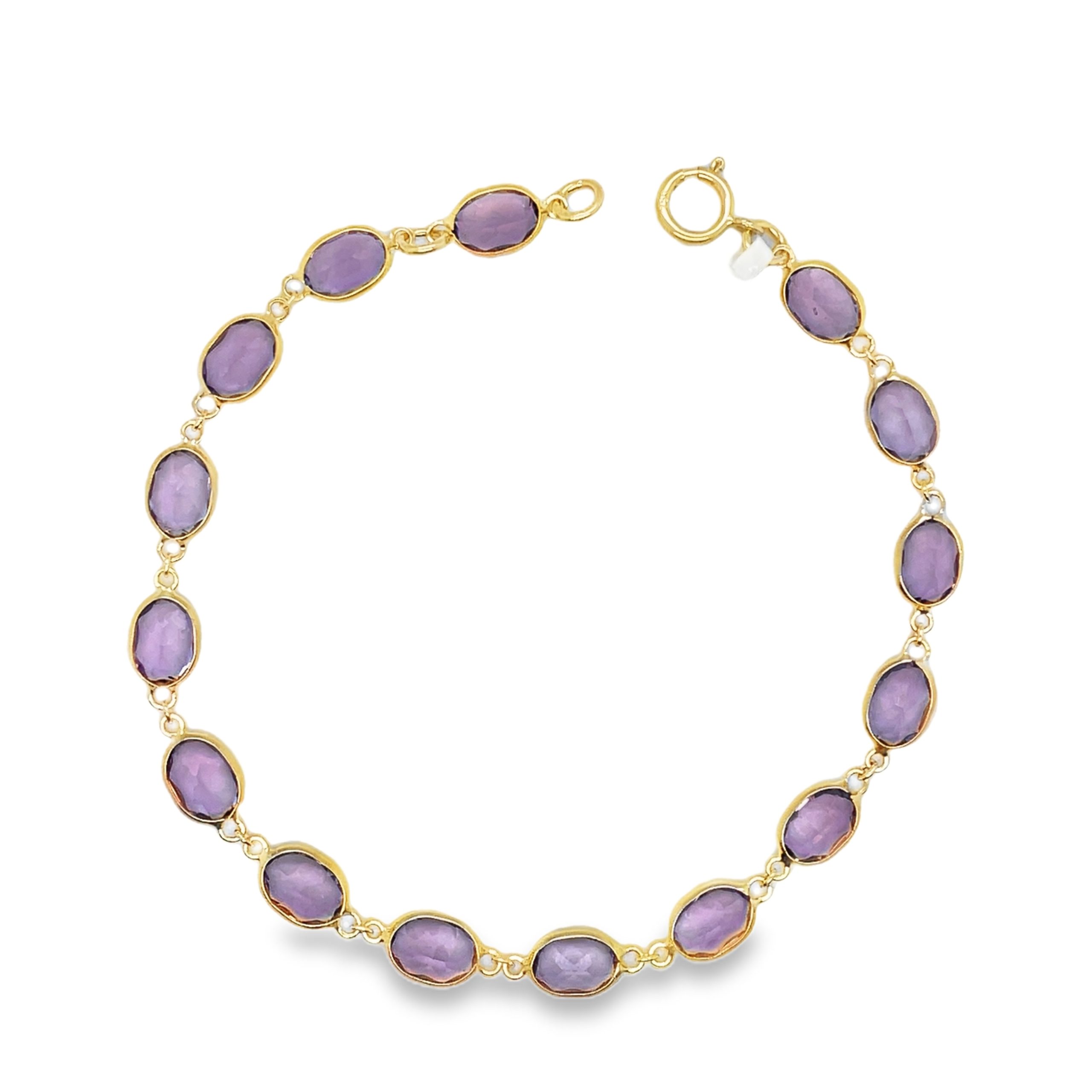 A graceful 18ct yellow gold gold chain bracelet, showcasing a series of oval shaped amethyst gemstones. A timeless piece for any jewellery collection