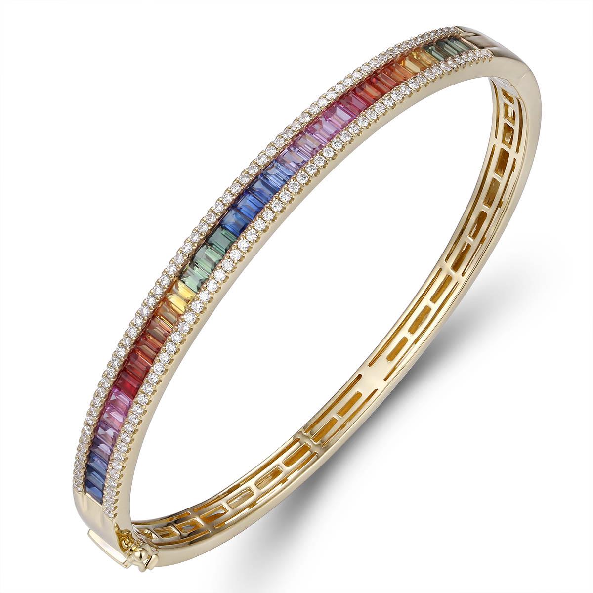 18ct Yellow Gold Fancy Colour Sapphire & Diamond Bangle