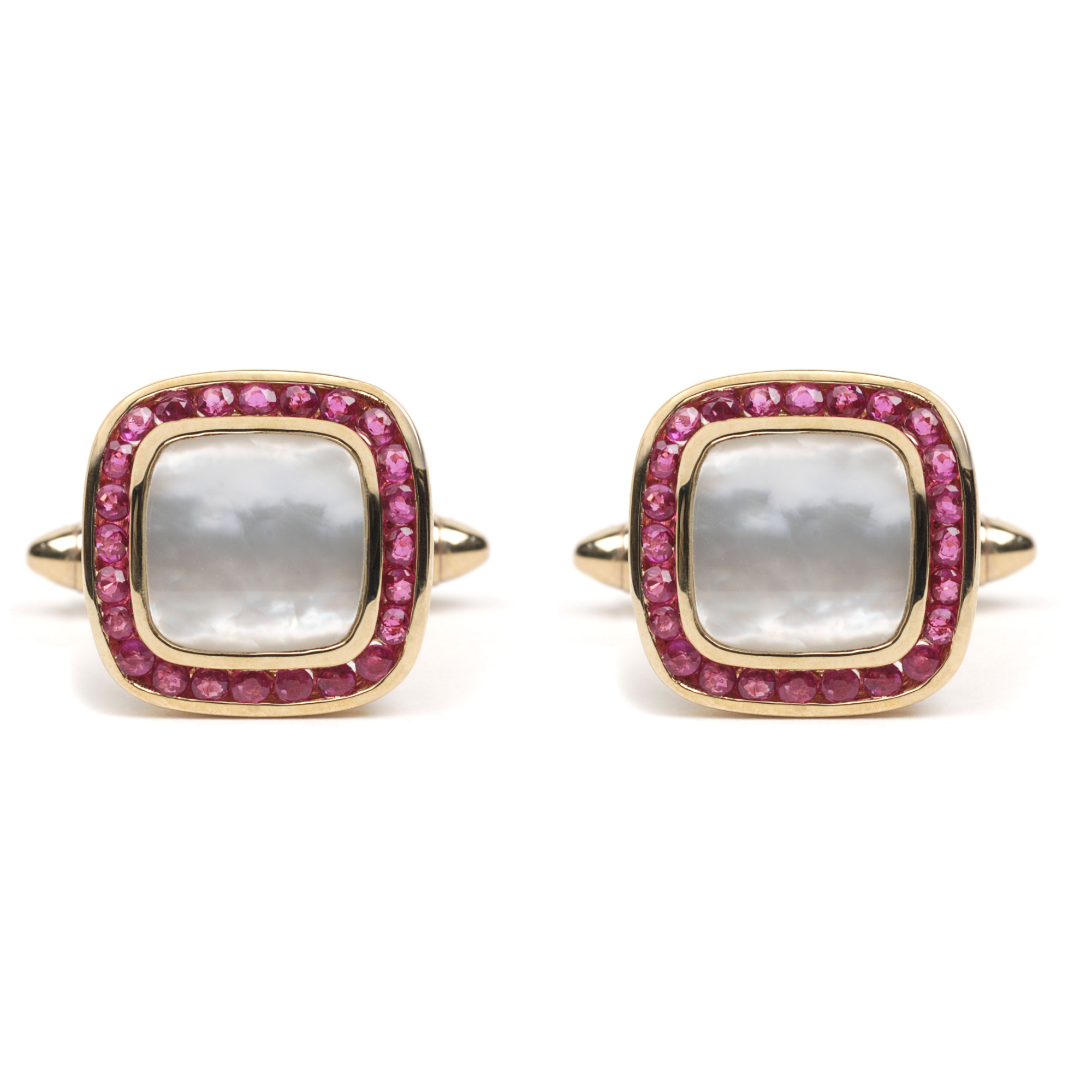 9ct Yellow Gold, Ruby & Mother of Pearl Square Cufflinks
