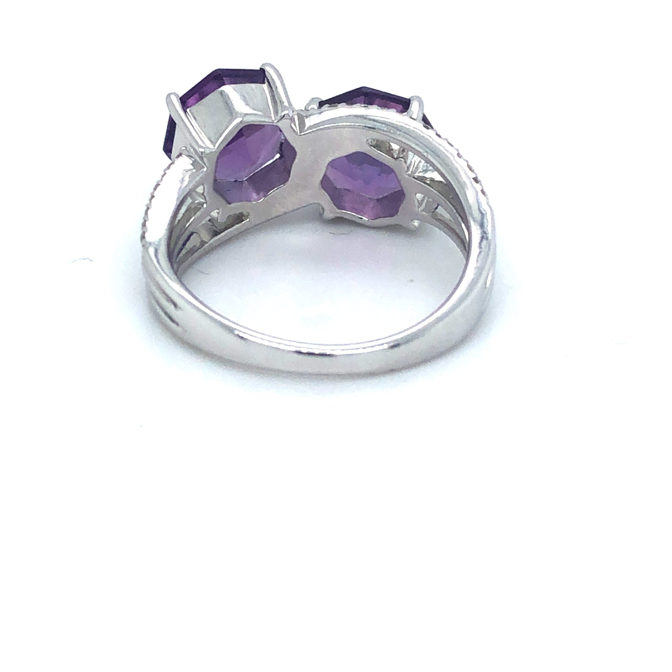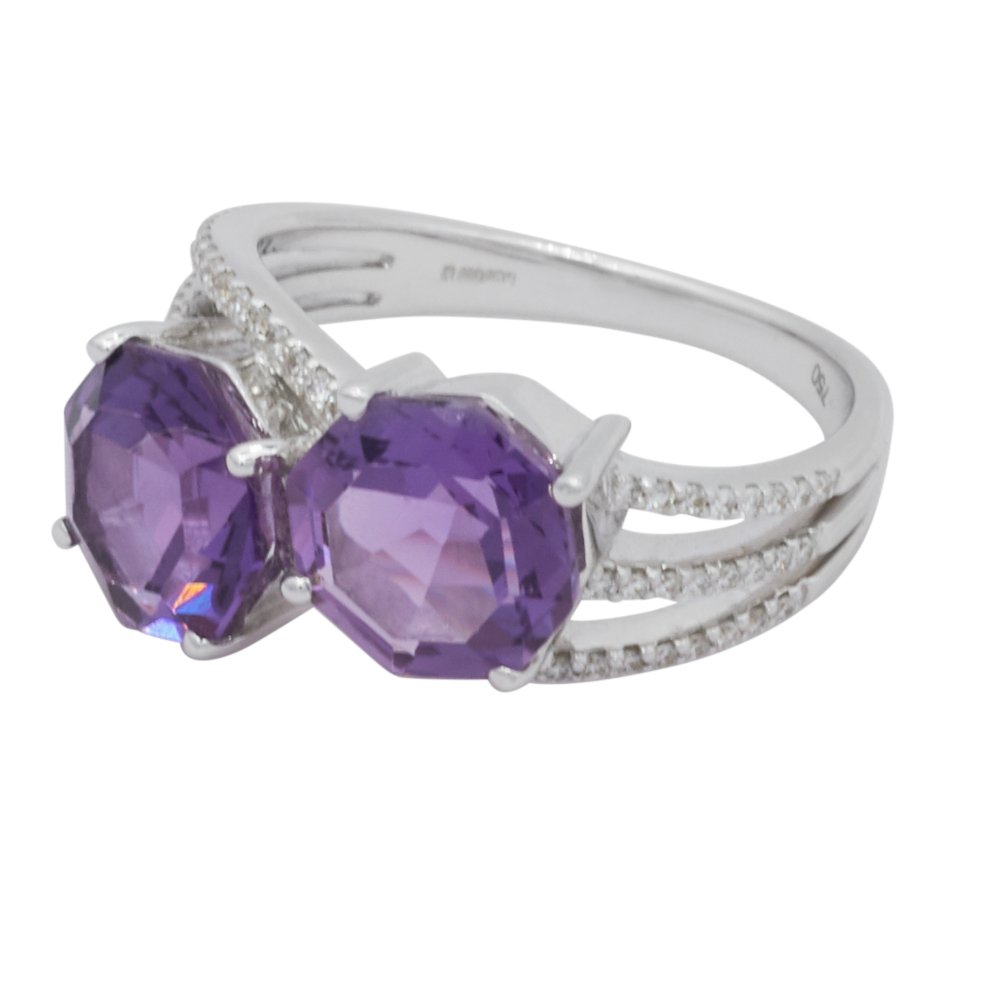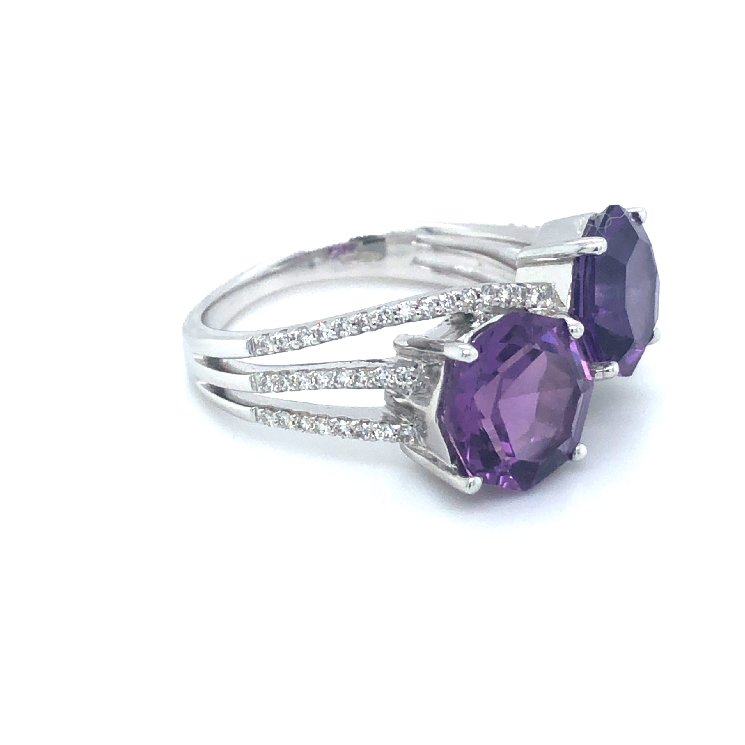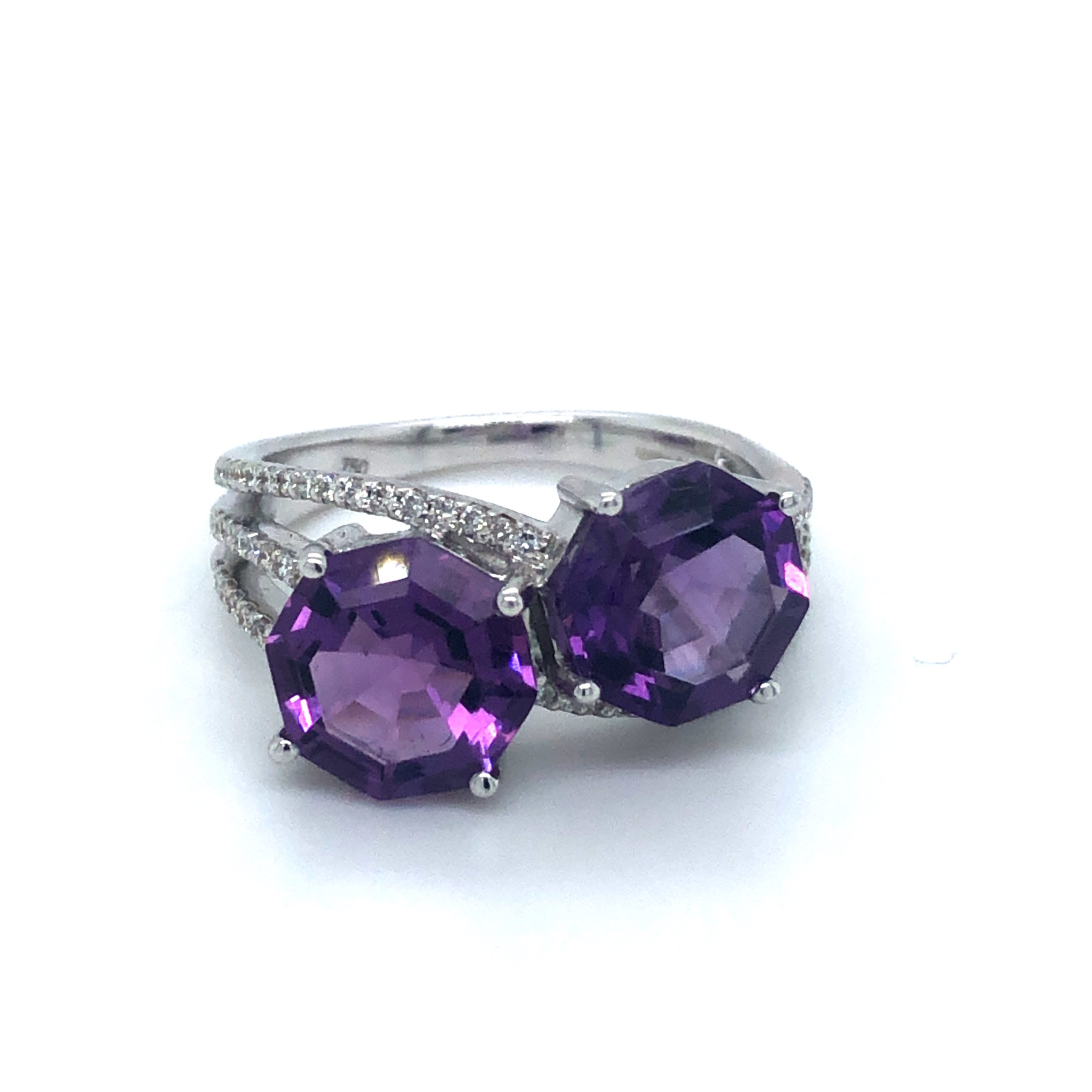 Amethyst 2 Stone Crossover 18ct White Gold Ring