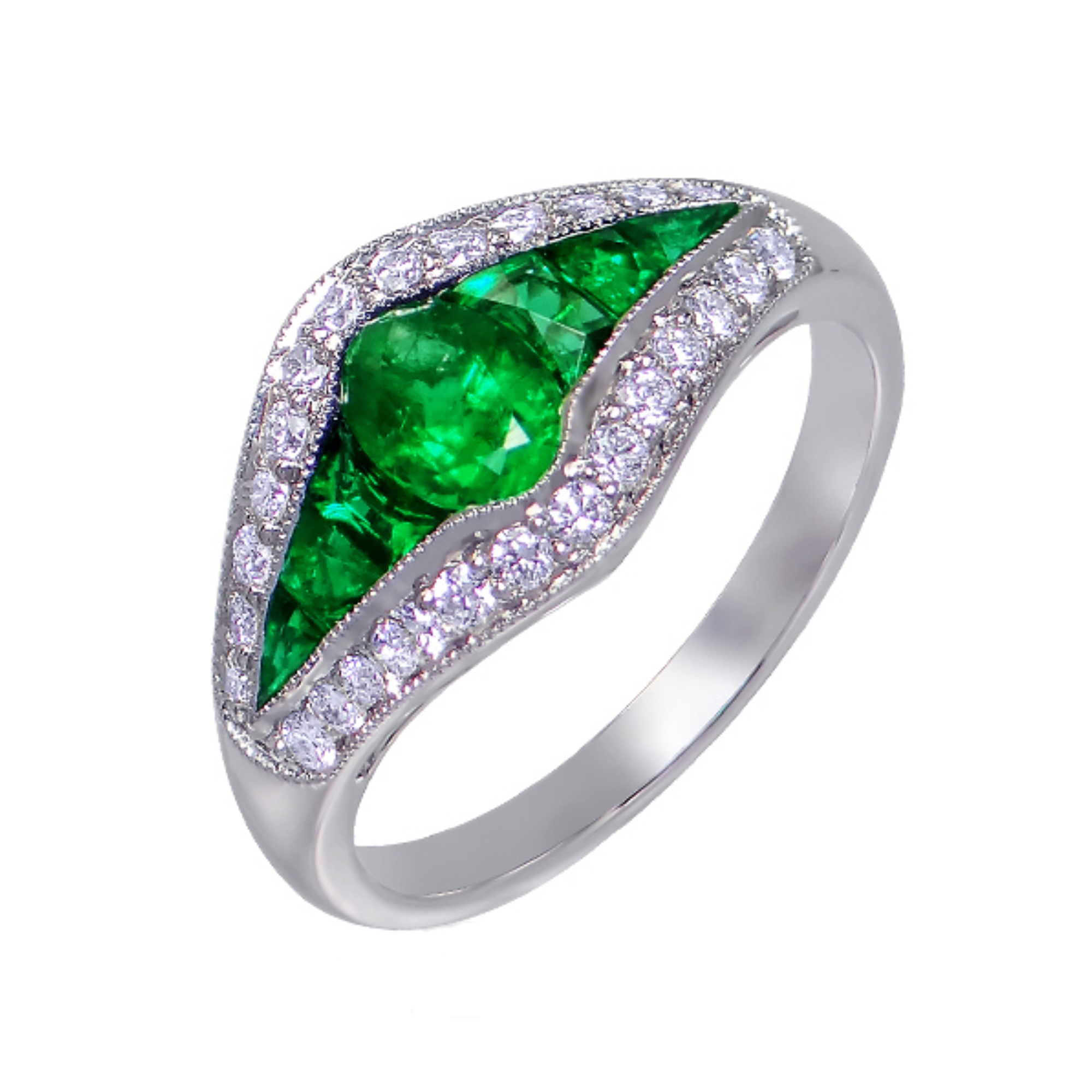 Emerald & Diamond 18ct White Gold Ring