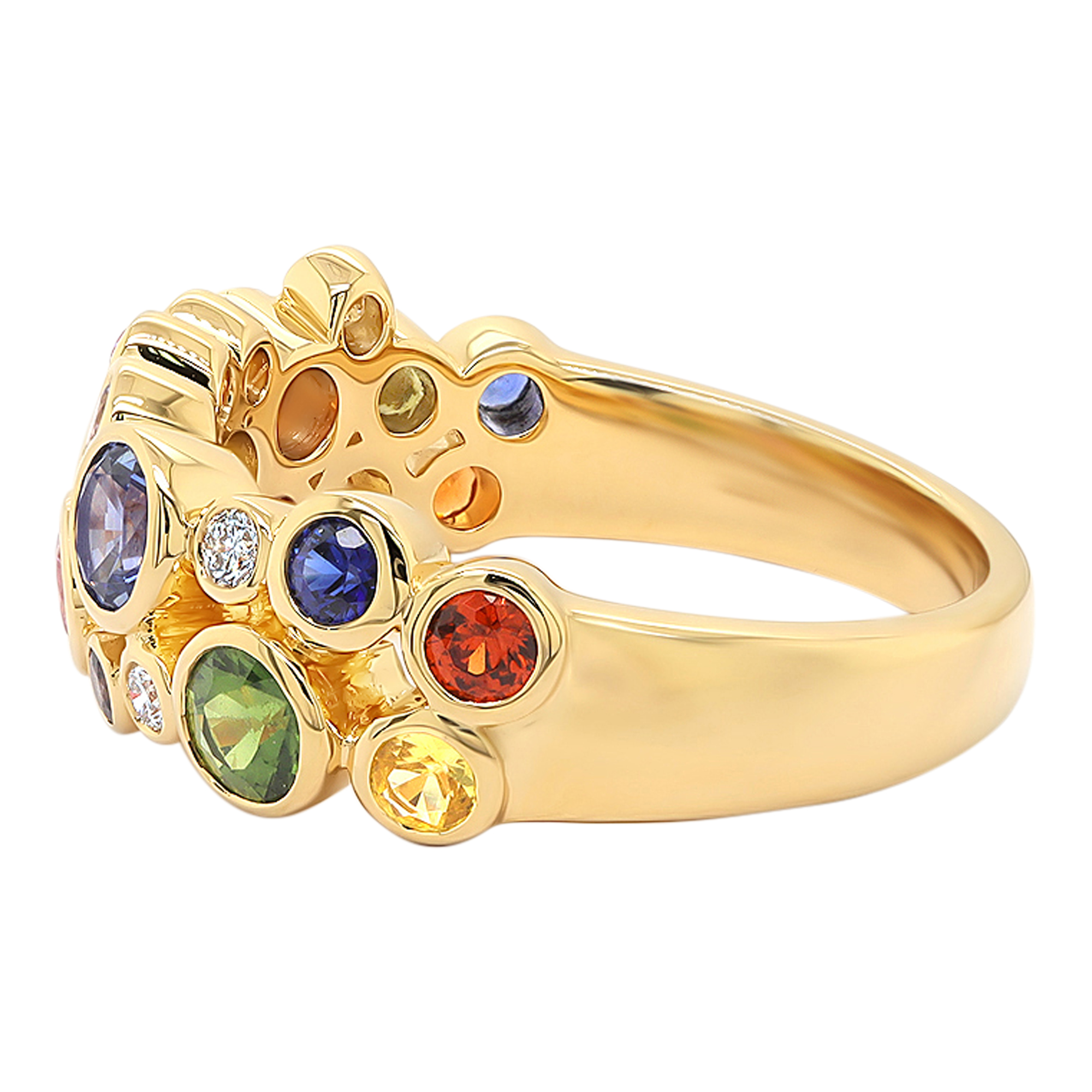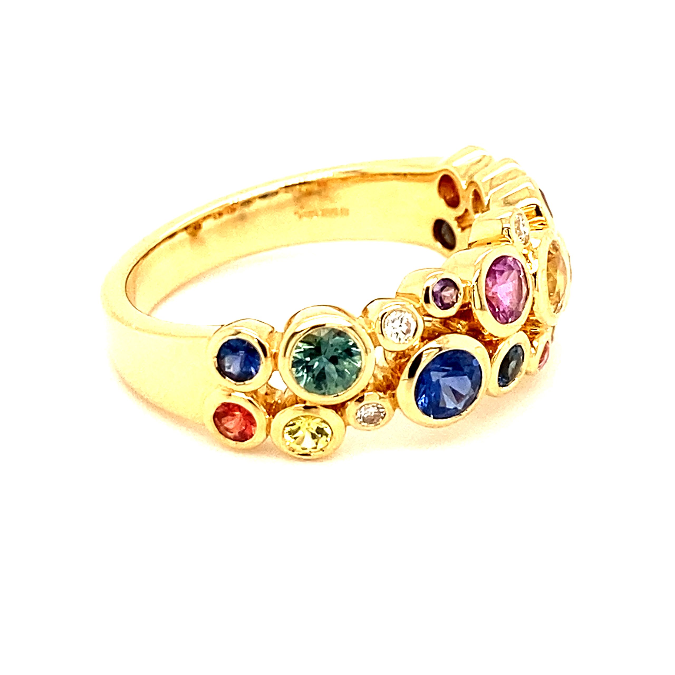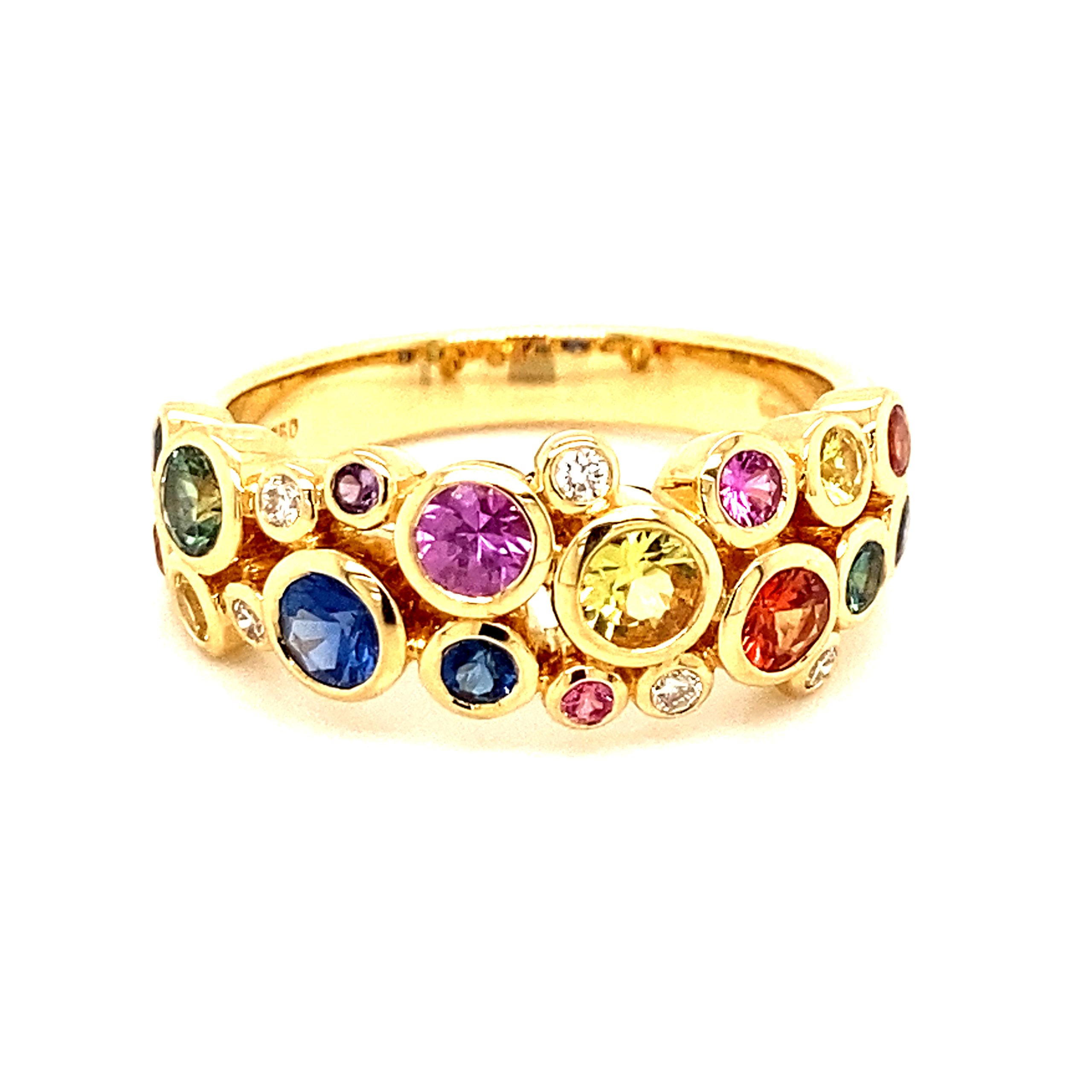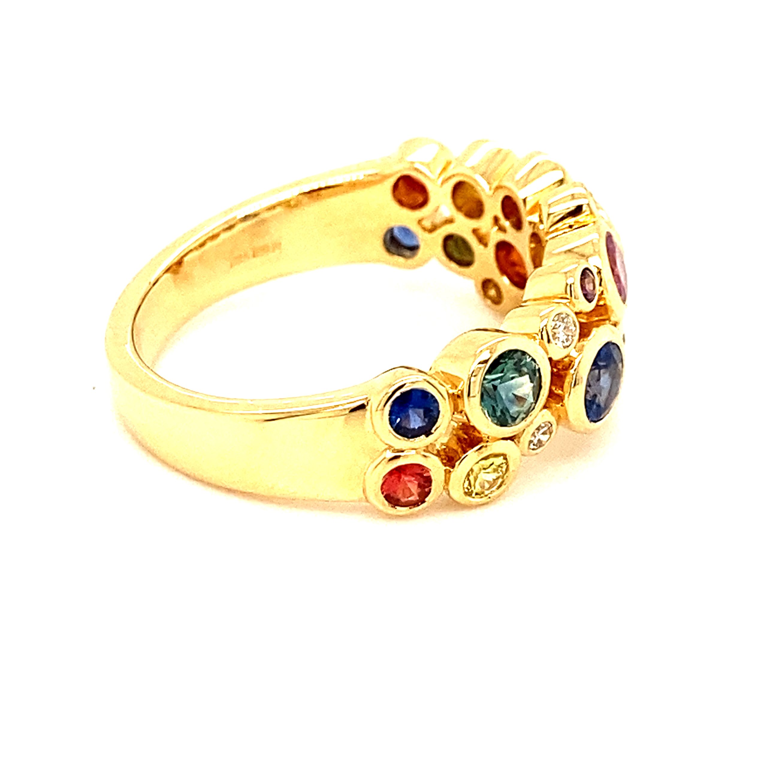 Fancy Multi-Coloured Sapphire & Diamond 18ct Yellow Gold Ring