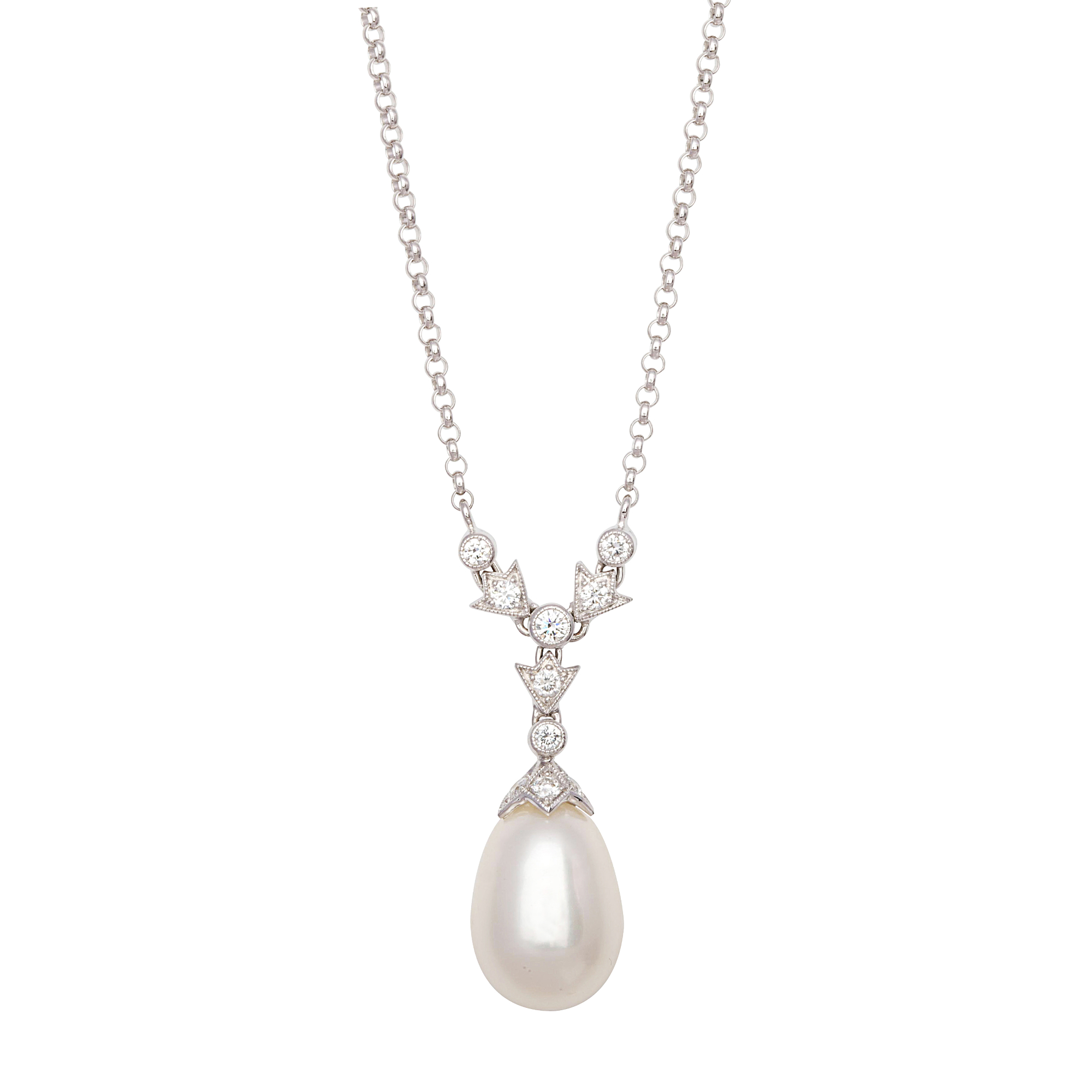 Freshwater Pearl & Diamond 18ct White Gold Necklace