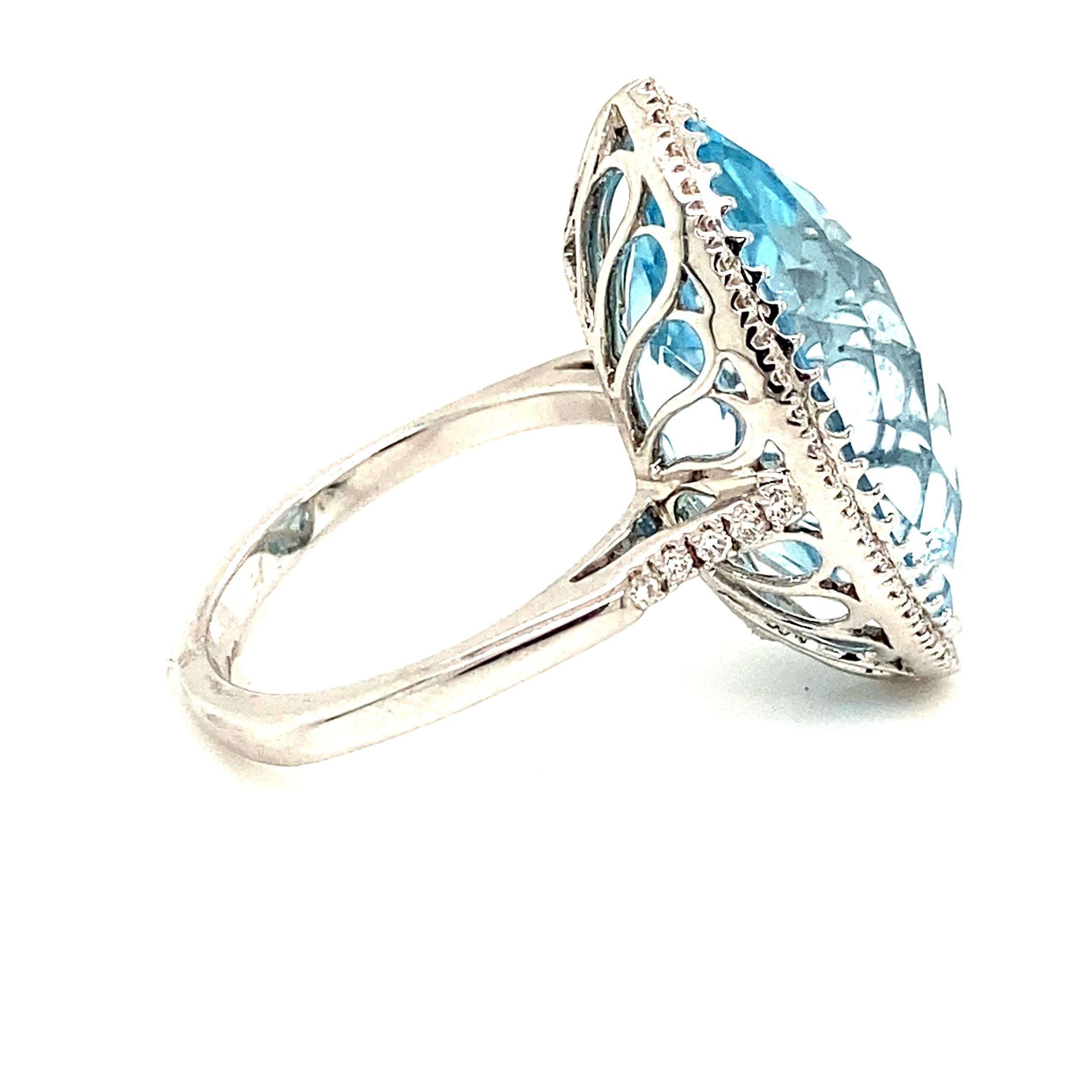 Marquis Checkerboard Cut Blue Topaz & Diamond 18ct White Gold Ring