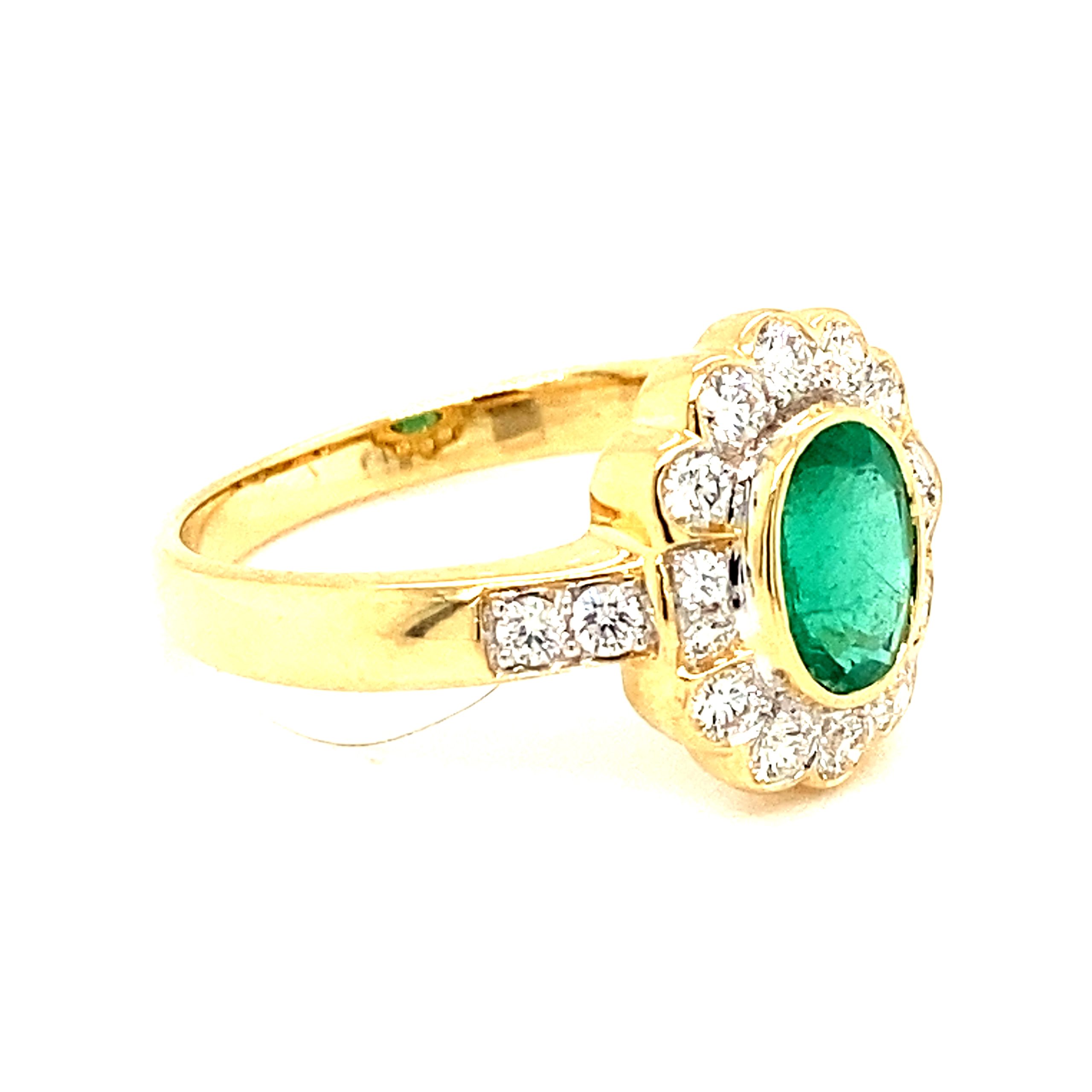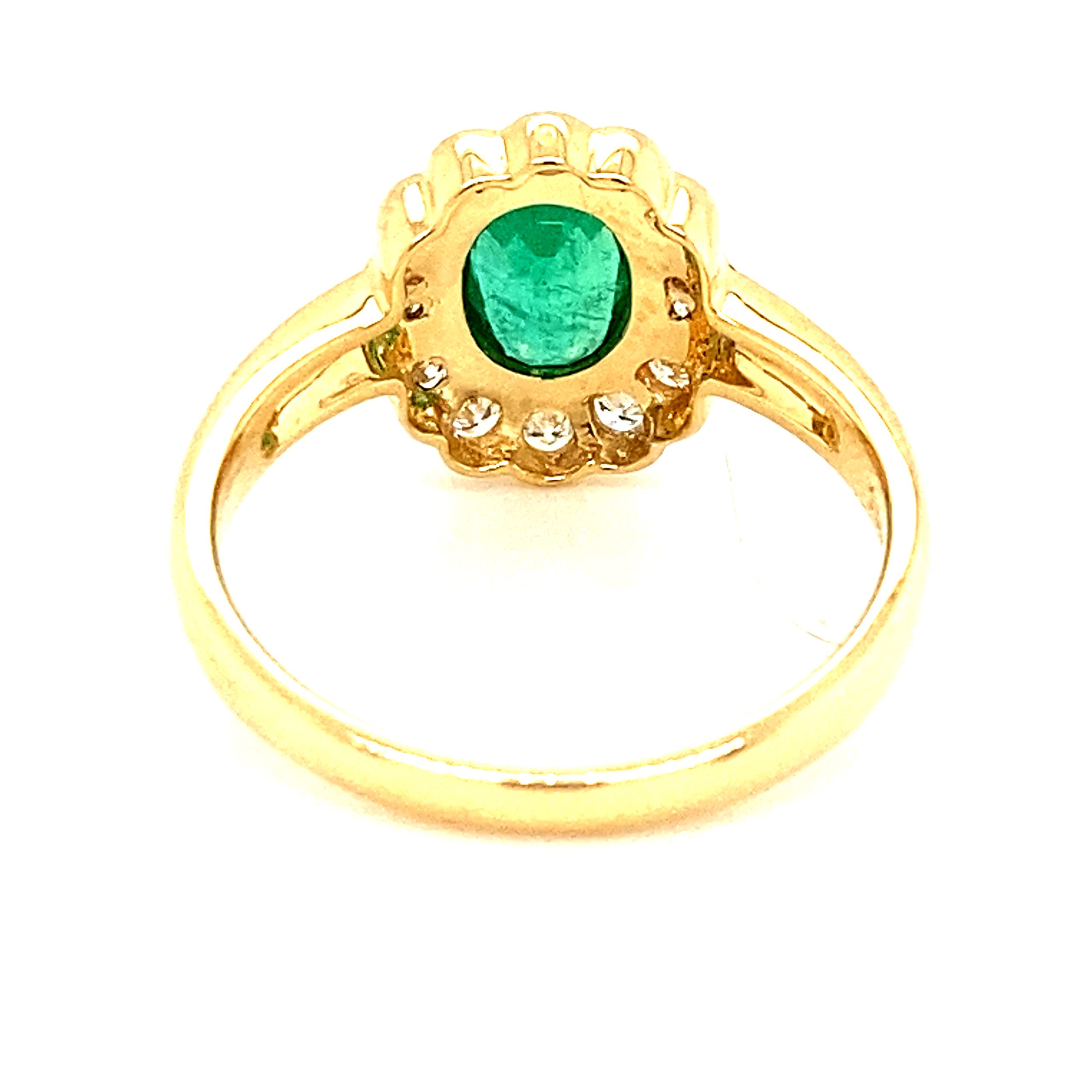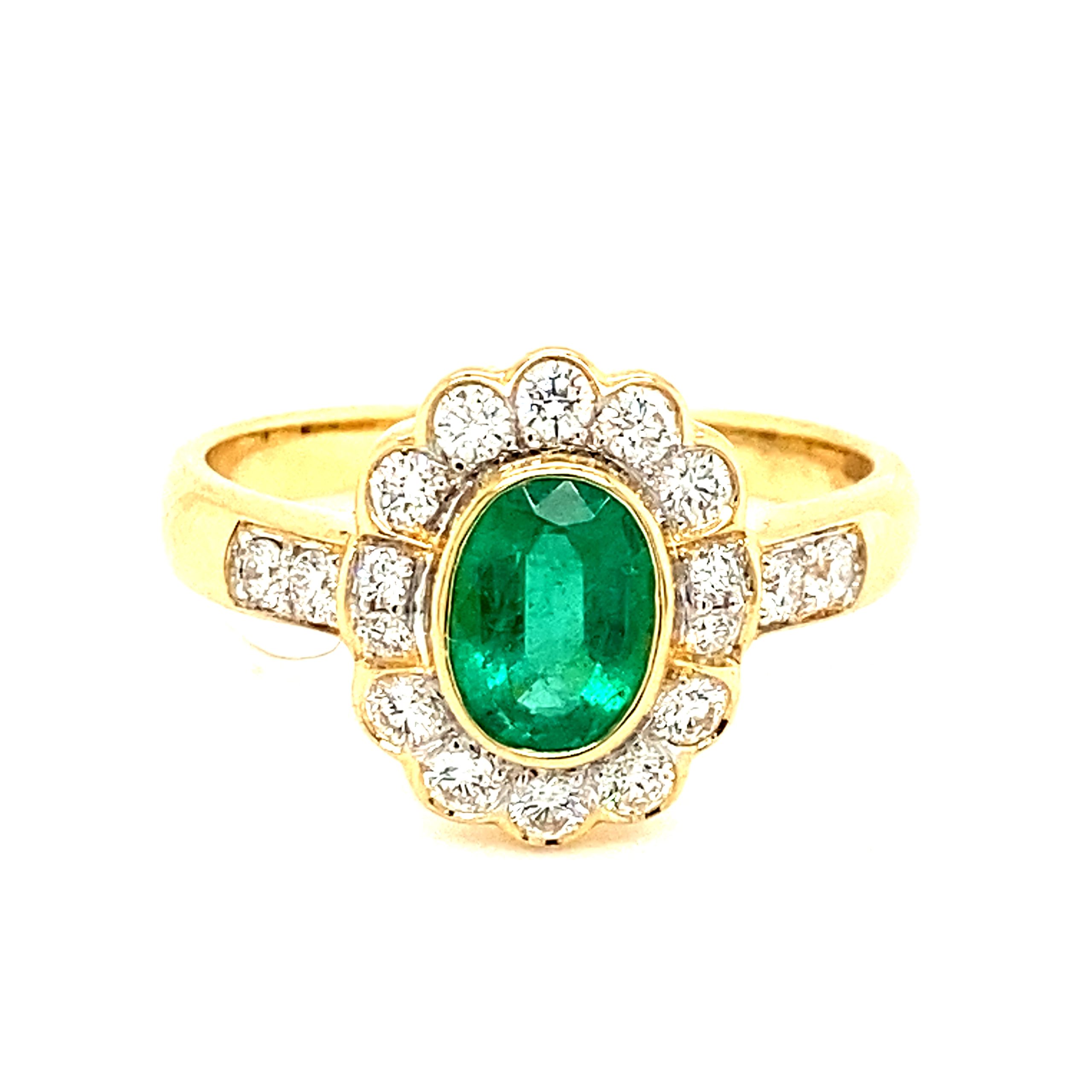 Oval Emerald & Diamond Cluster 18ct Yellow Gold Ring