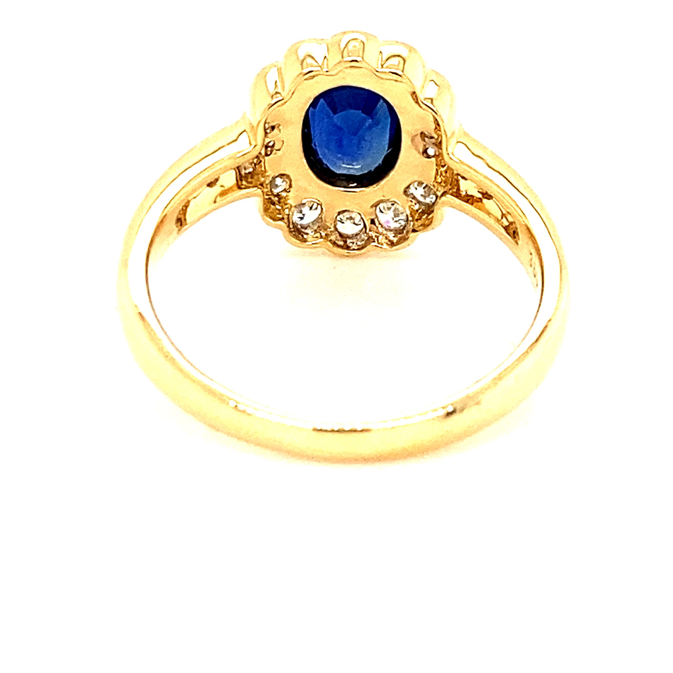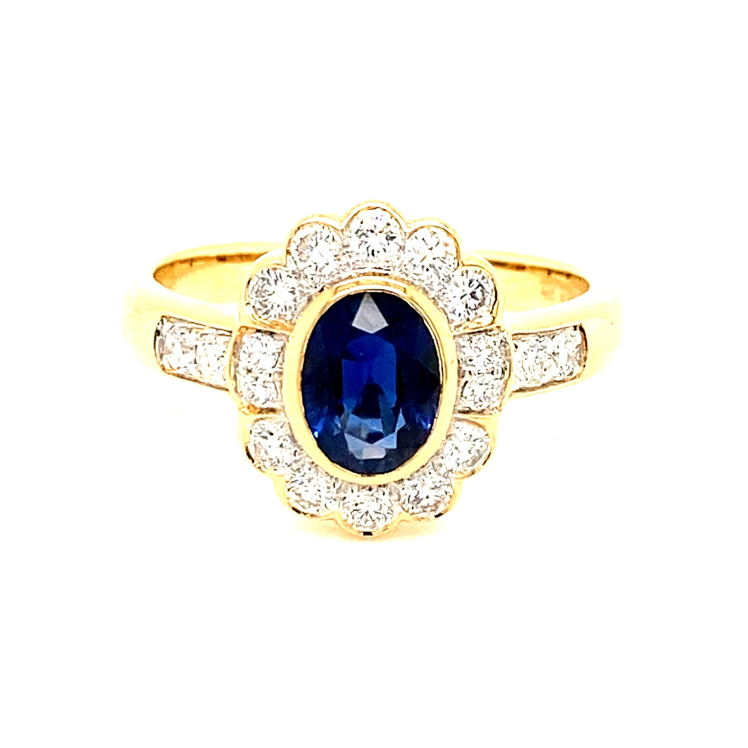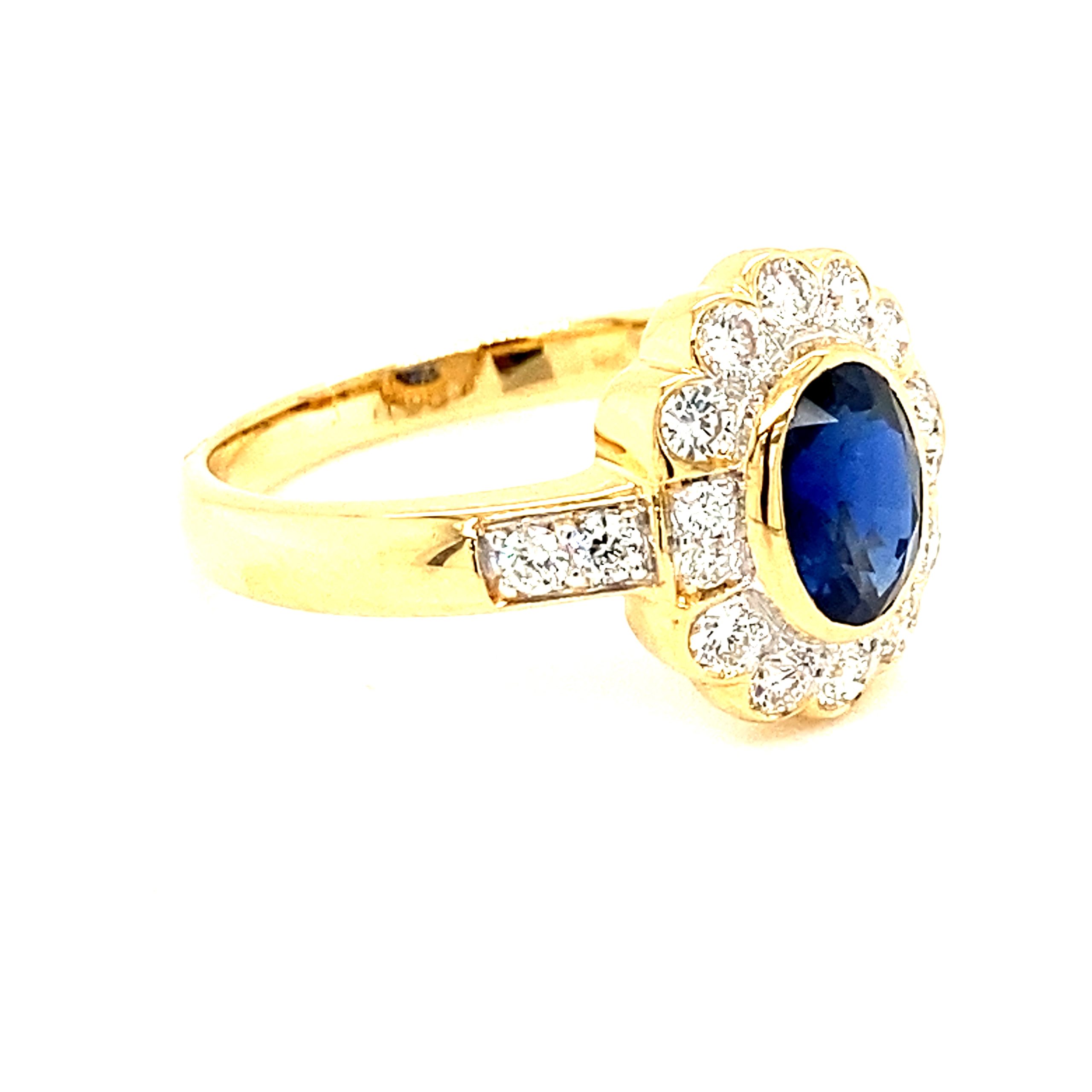 Oval Sapphire & Diamond Cluster 18ct Yellow Gold Ring