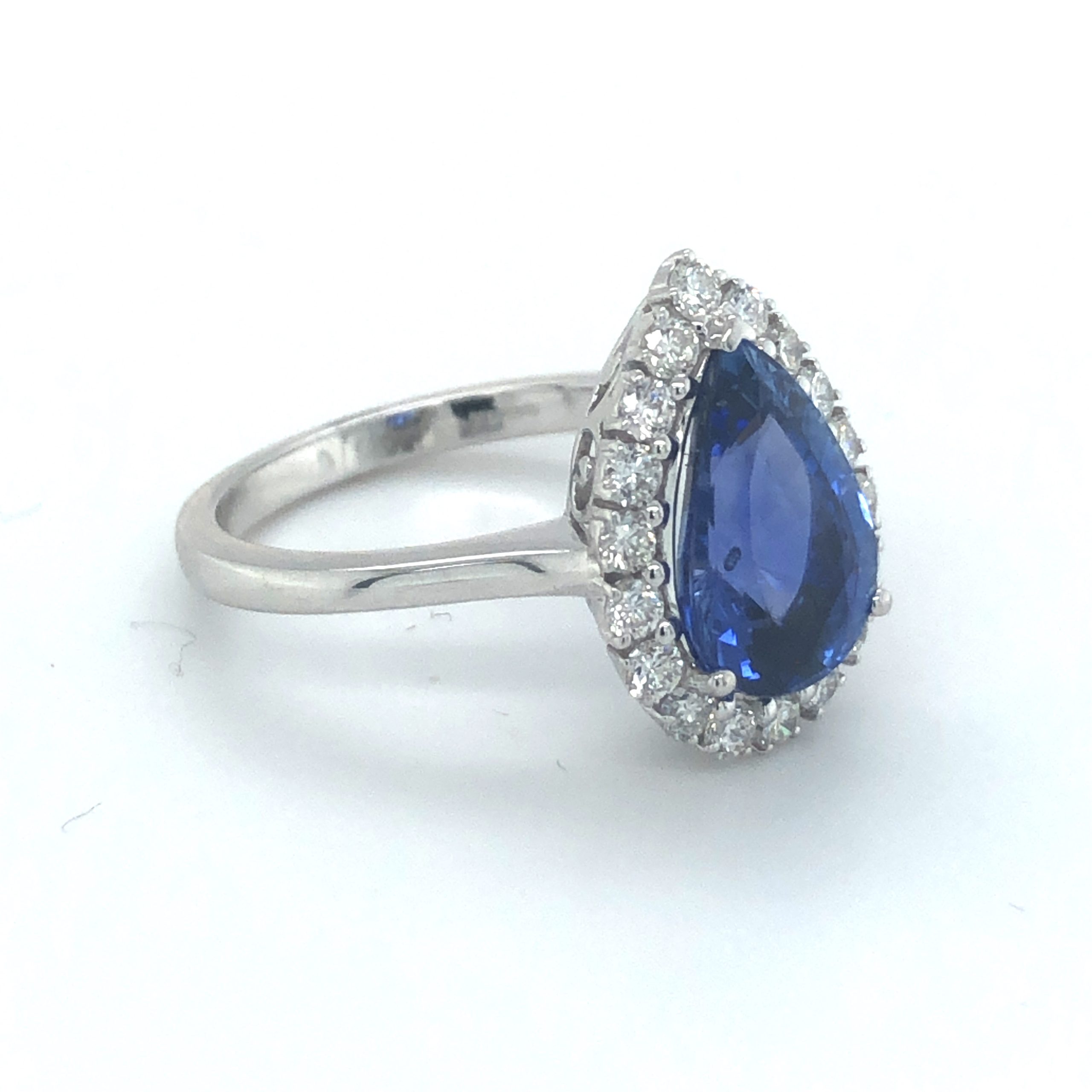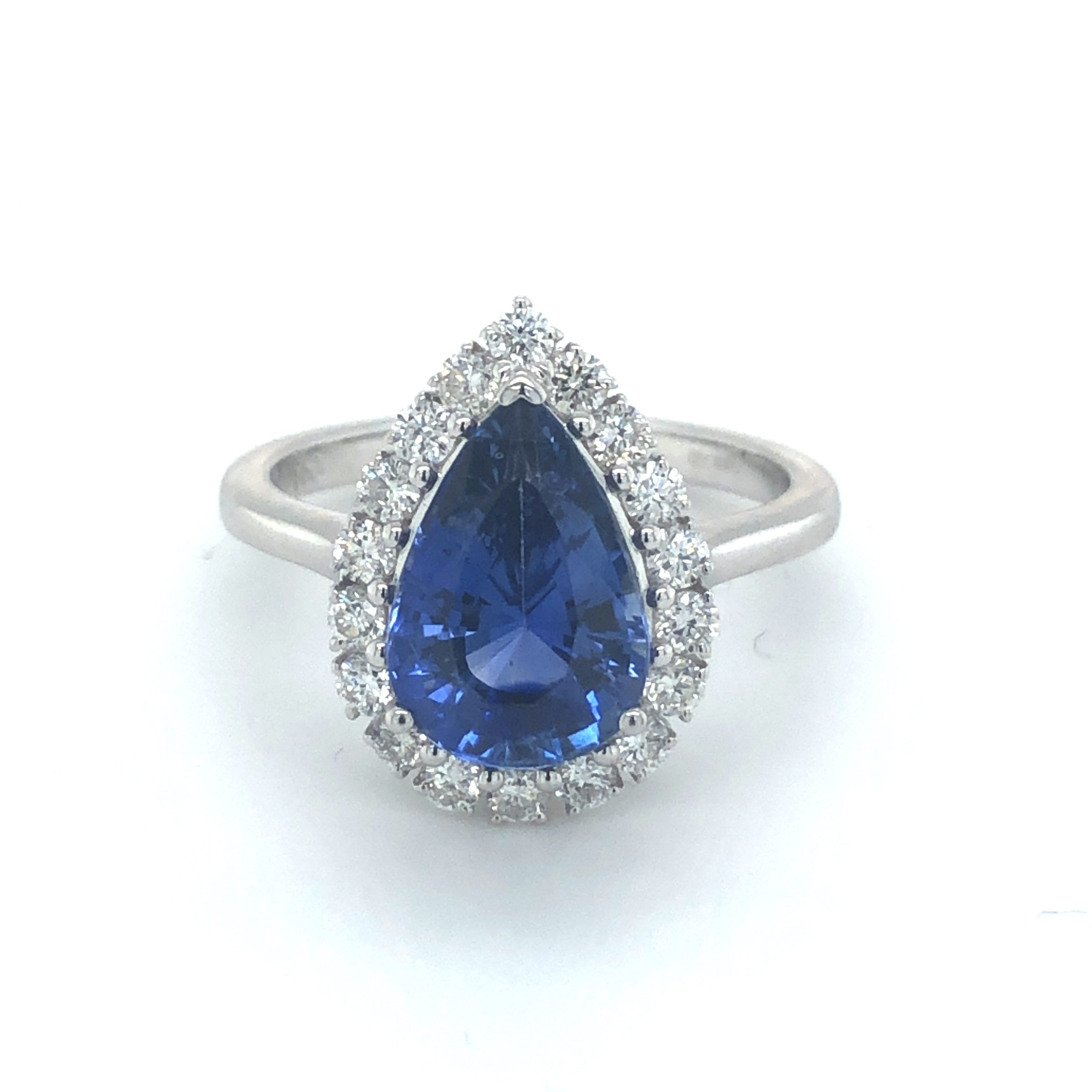 Pear Cut Sapphire & Diamond 18ct White Gold Ring