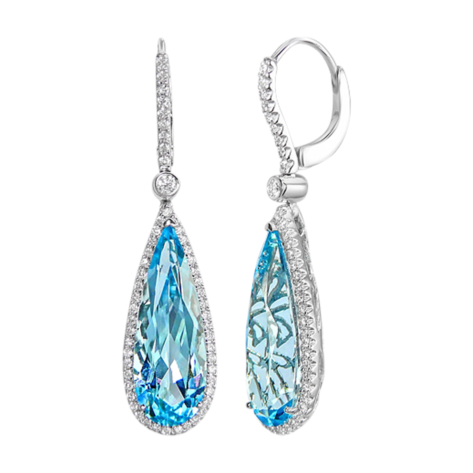 Pear Cut Sky Bluer Topaz & Diamond White Gold 18ct White Gold Pendant