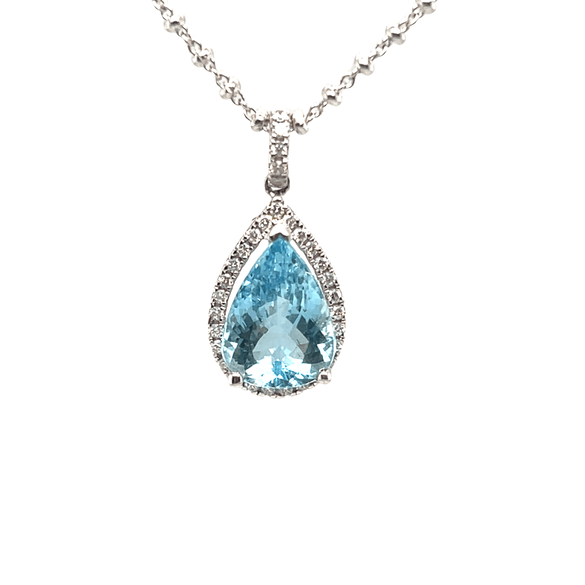 Pear Shaped Aquamarine & Diamond 18ct White Gold Pendant