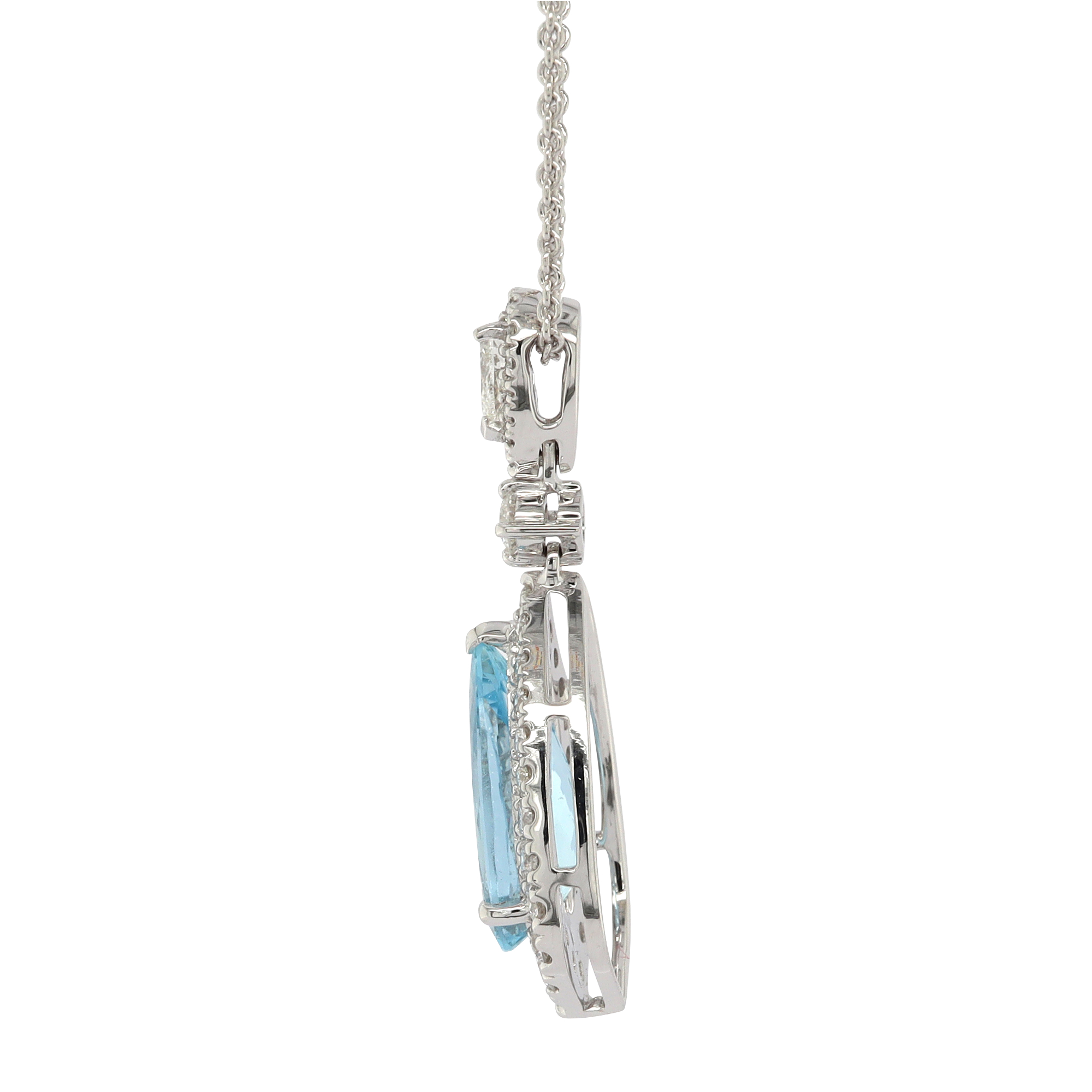 Pear Shaped Aquamarine & Diamond 18ct White Gold Pendant