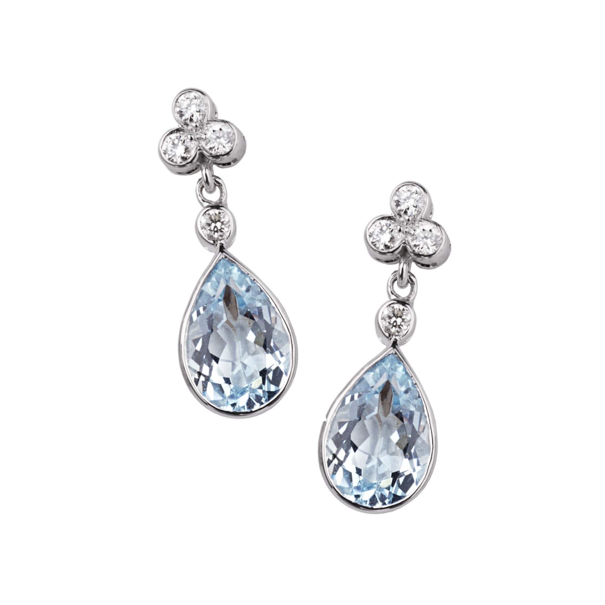 Pear Shaped Aquamarine & Diamond Trefoil 18ct White Gold Earrings