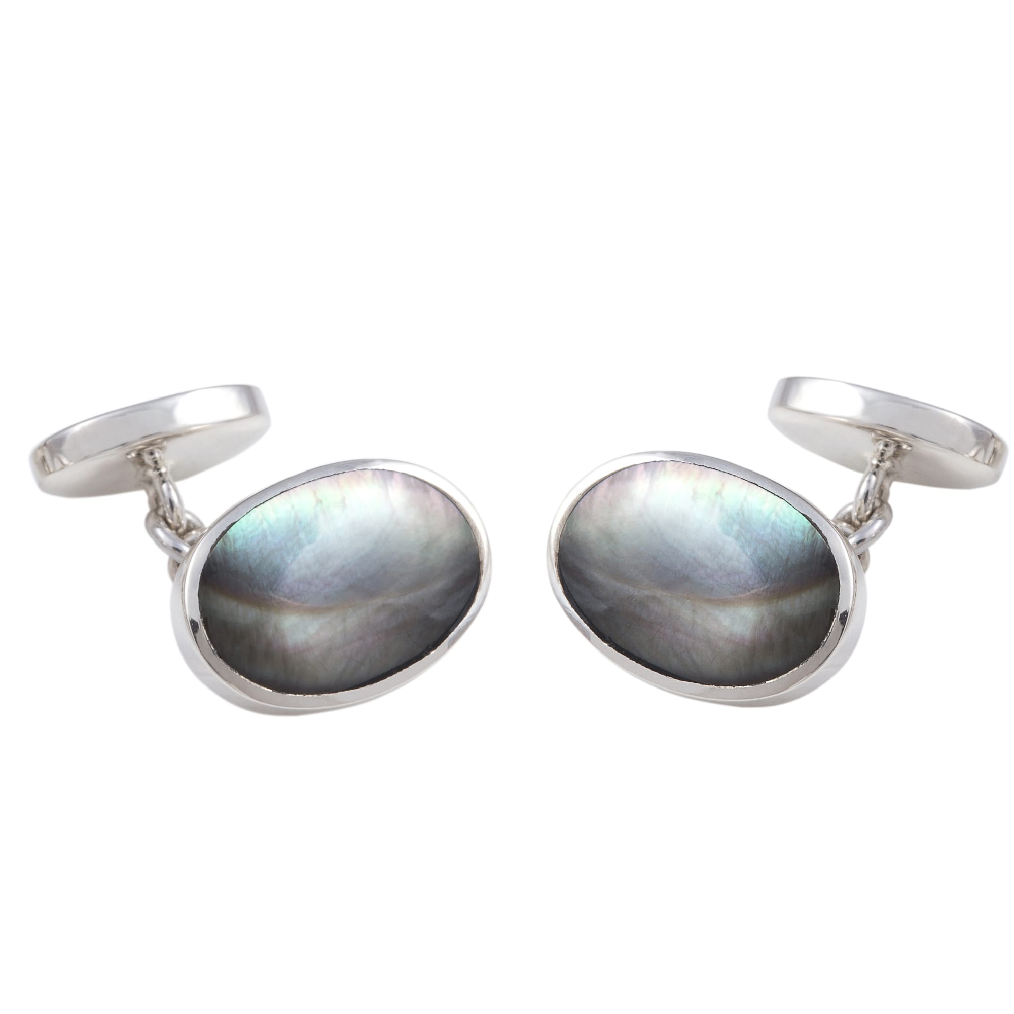 Sterling Silver Black Mother of Pearl Chain Link Cufflinks