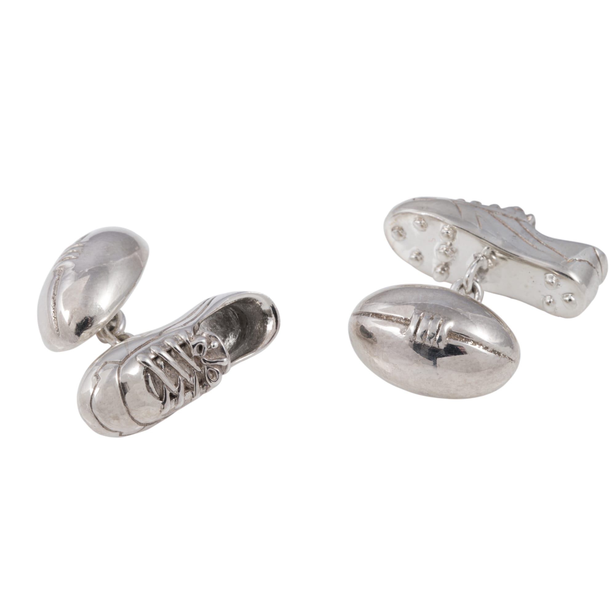 Sterling Silver Boot & Rugby Ball Cufflinks with Chain Link