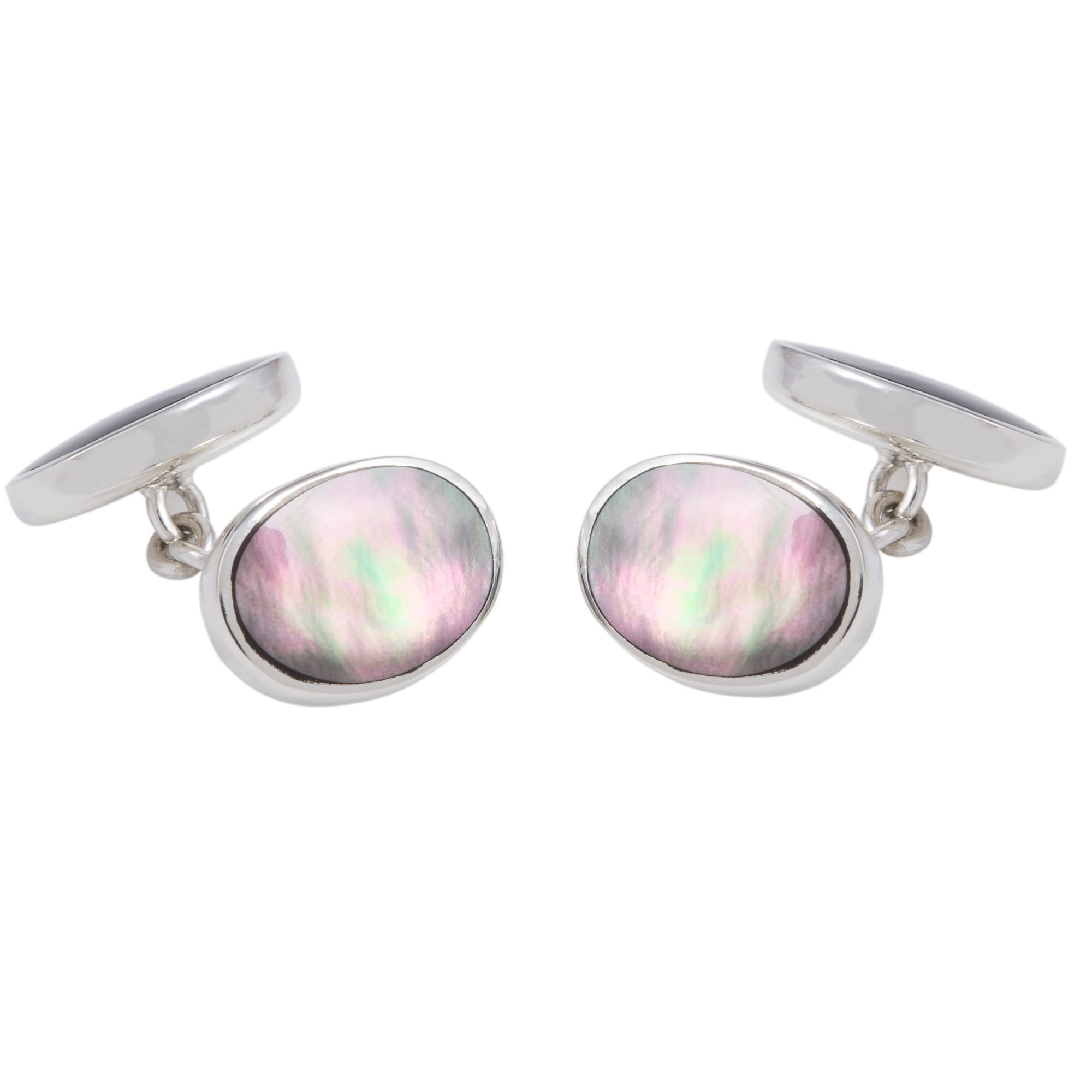 Sterling Silver Double Oval Black Mother of Pearl Cufflinks