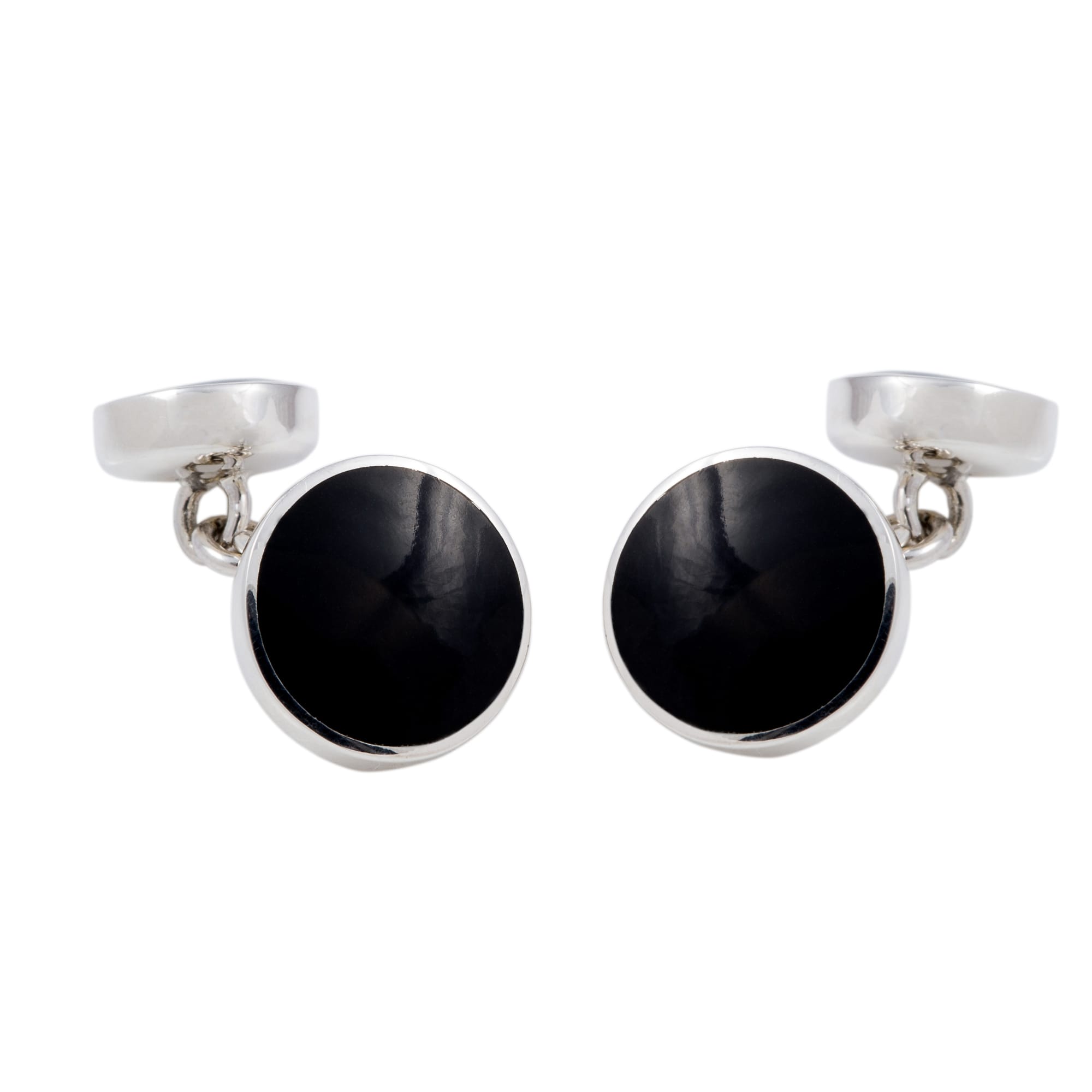 Sterling Silver Double Round Onyx Chain Link Cufflinks