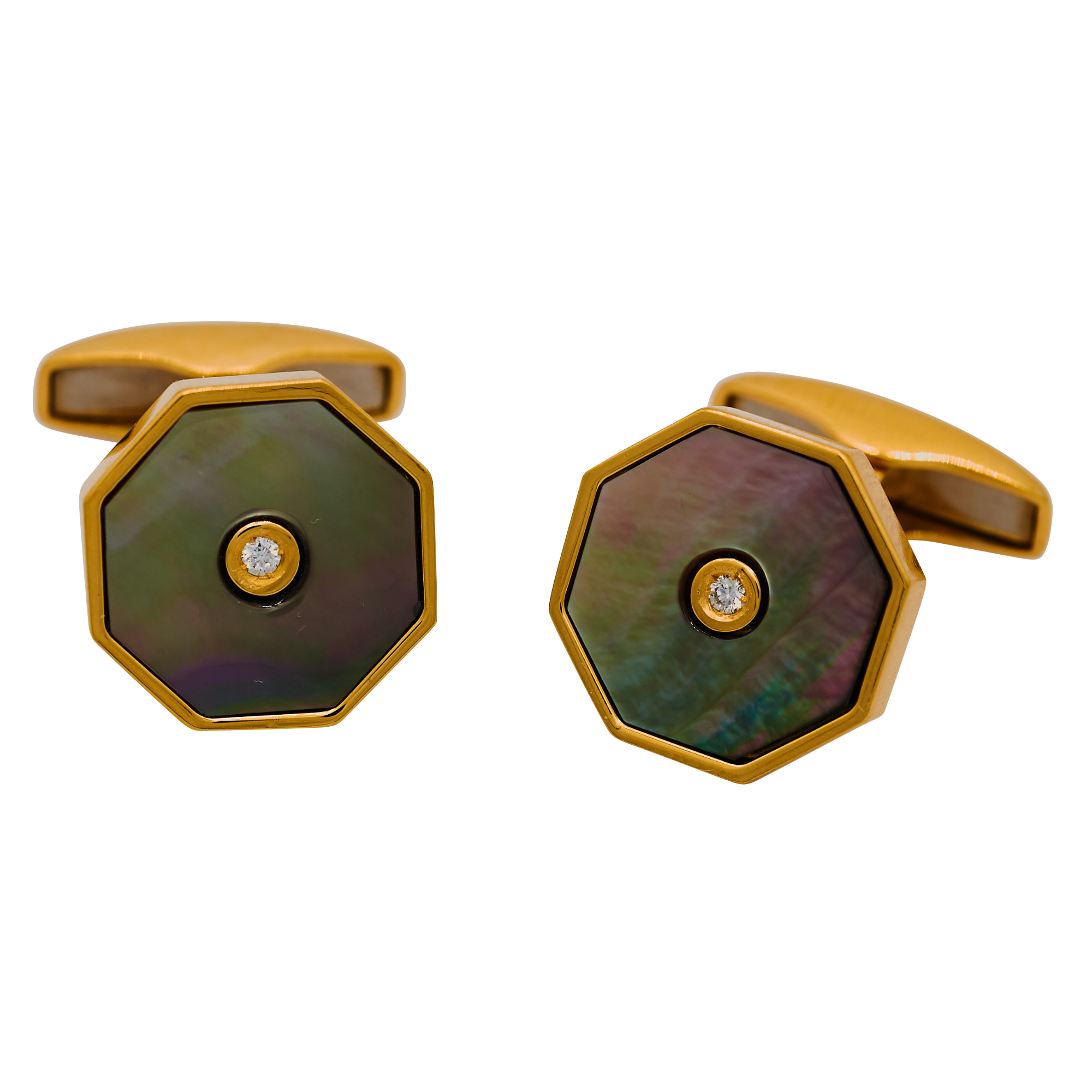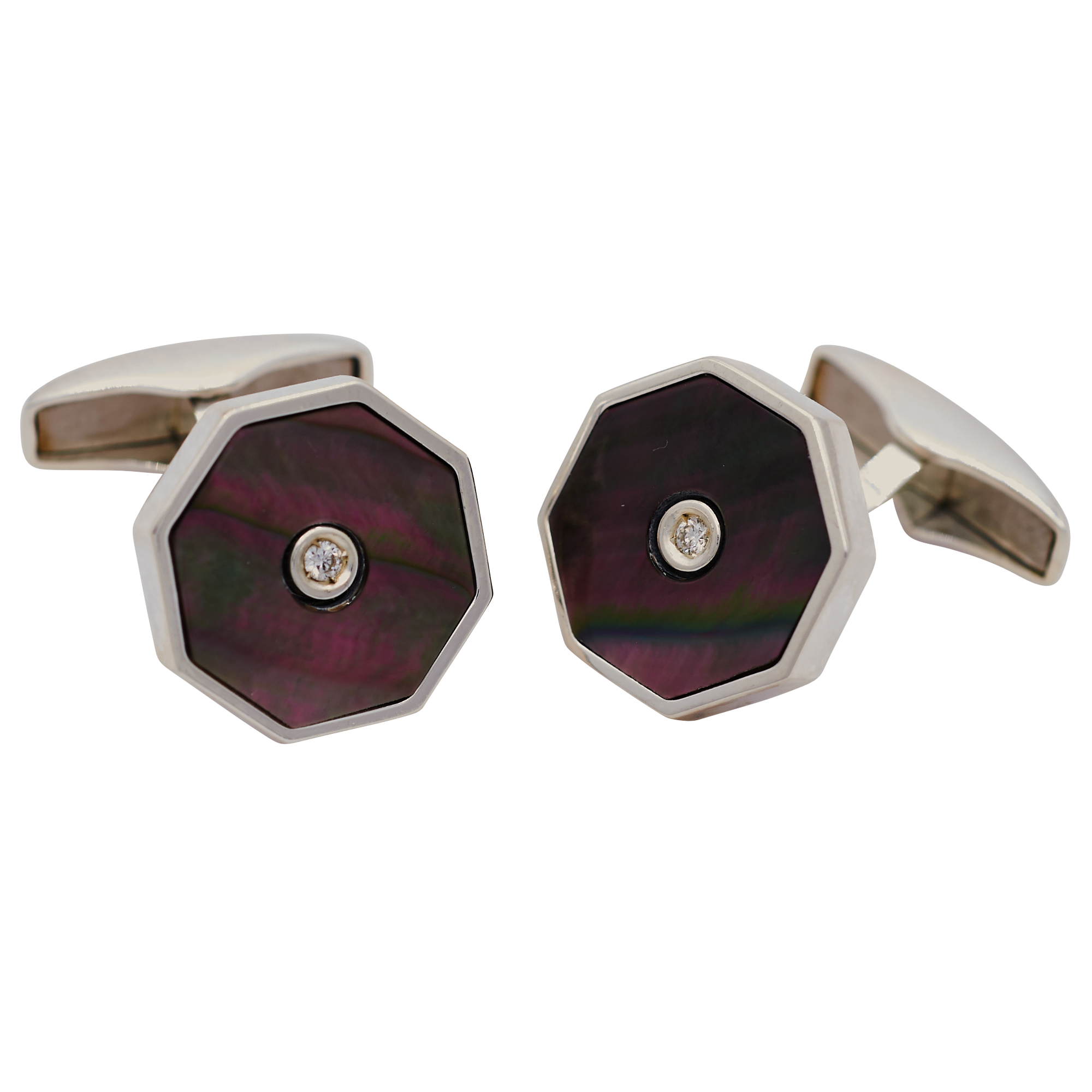 Sterling Silver Hexagon Shaped Mother of Pearl Cufflinks with Diamond Centre