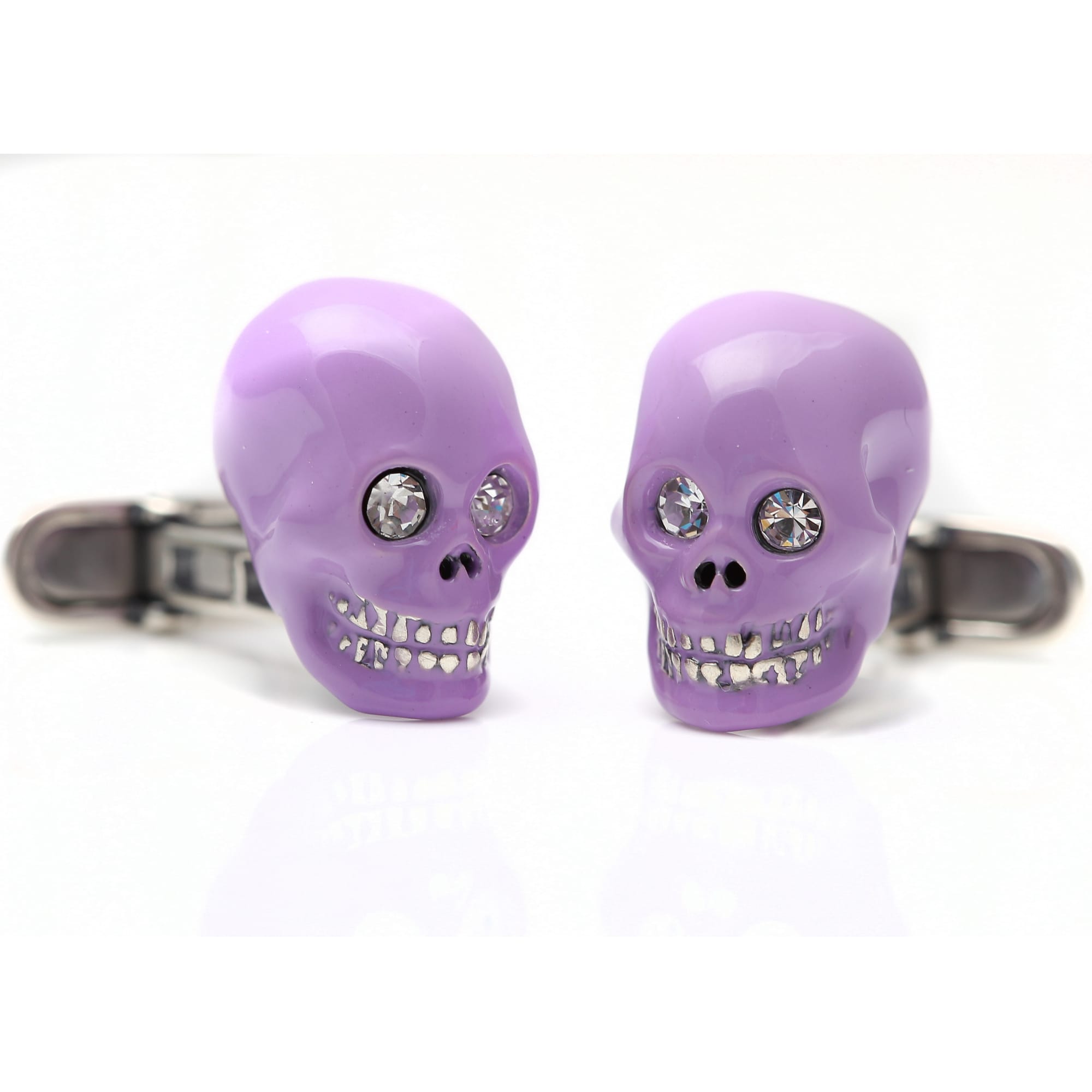 Sterling Silver, Lilac Enamel & Crystal Eyes Skull Cufflinks