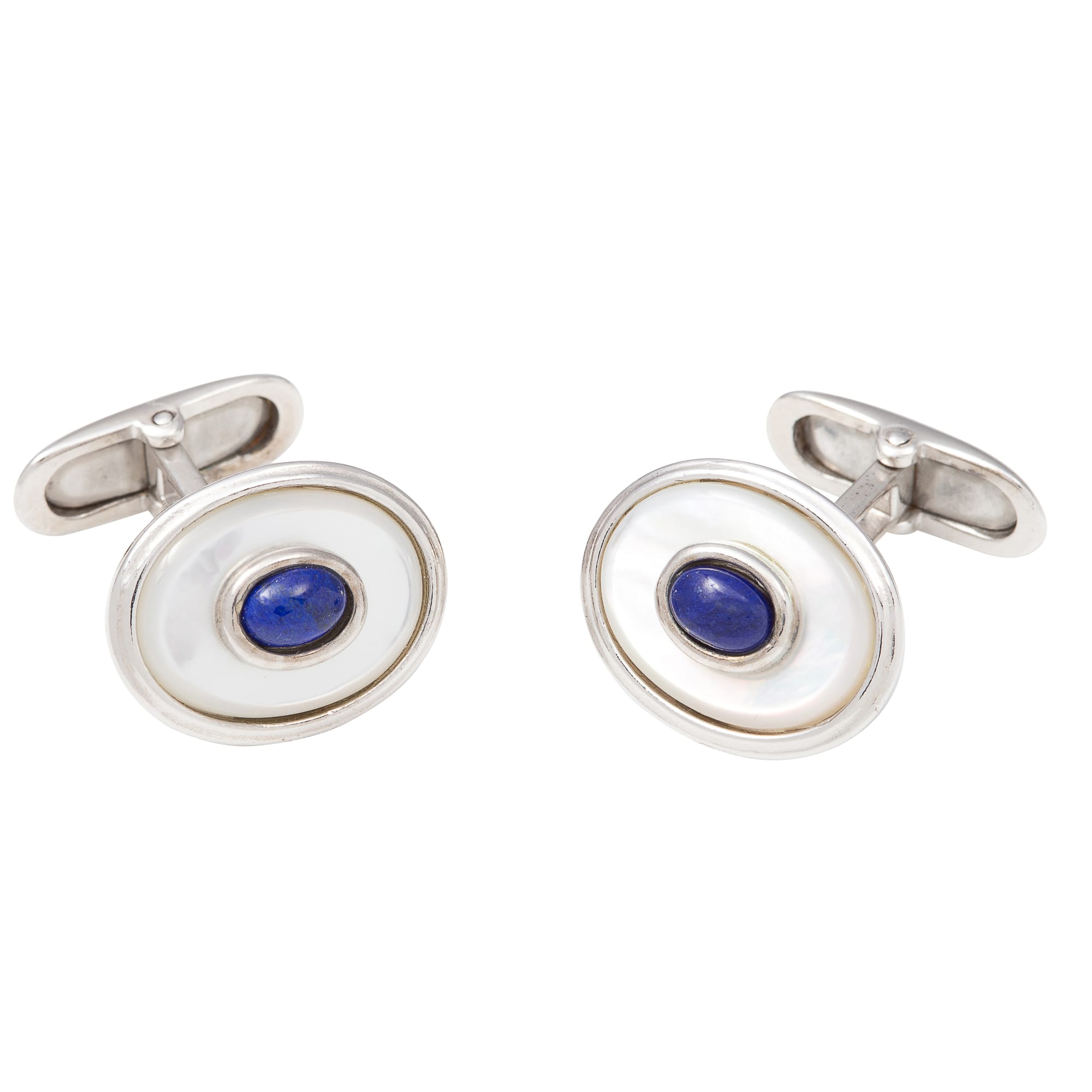 Sterling Silver, Mother of Pearl & Lapis Oval Cufflinks