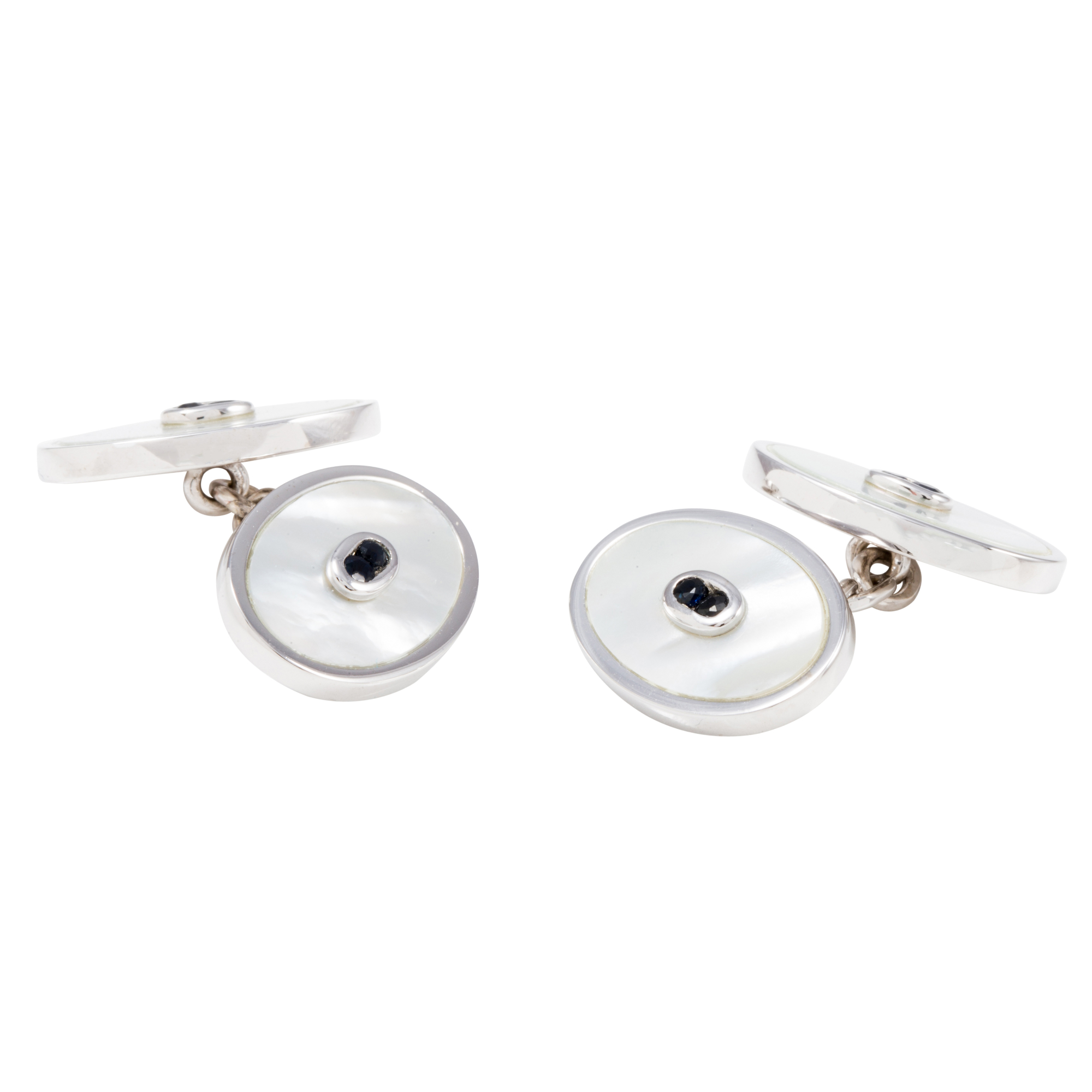Sterling Silver Mother of Pearl & Sapphire Double Oval Cufflinks
