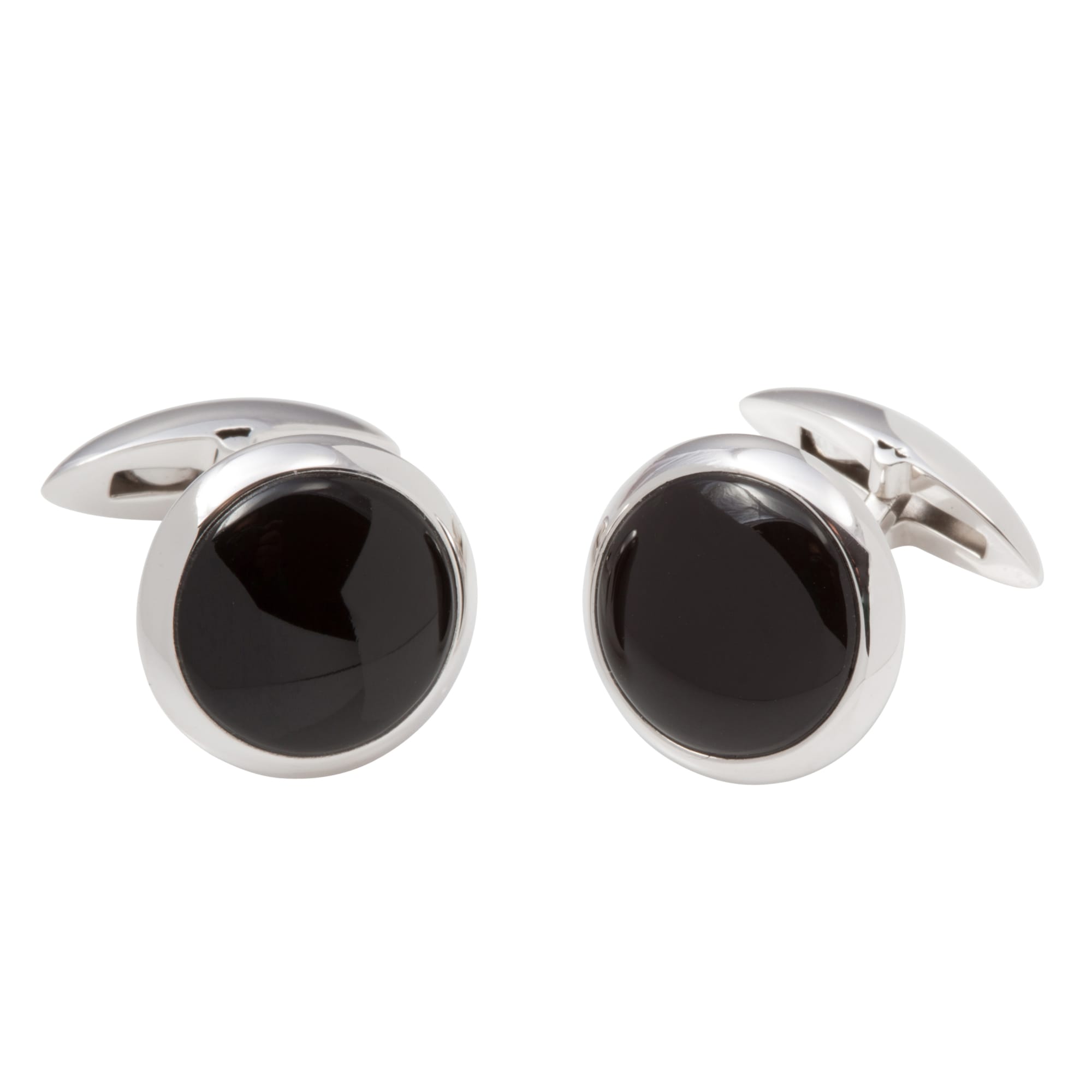 • Sterling Silver & Onyx Round Cufflinks