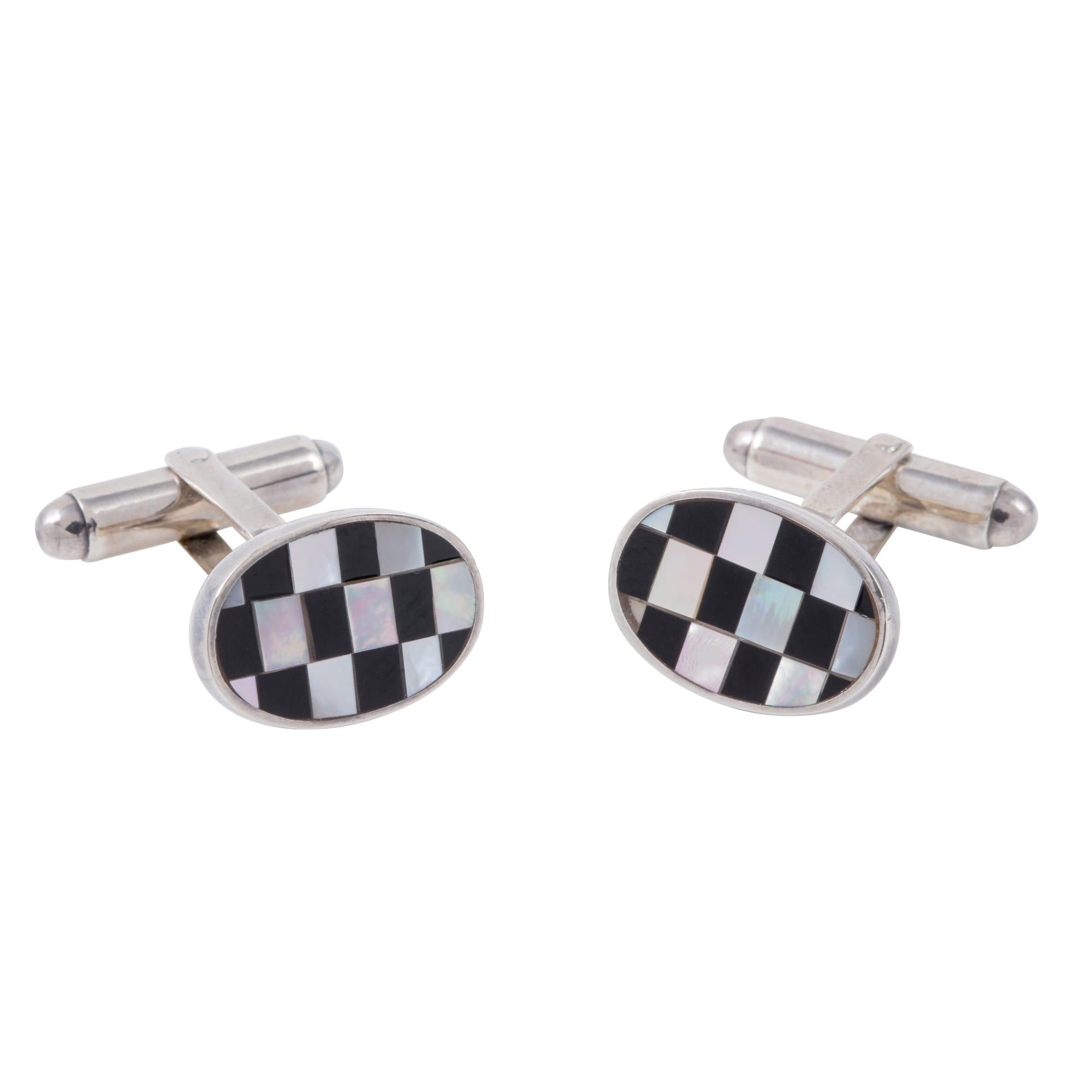 Sterling Silver Oval Chequered Mother of Pearl & Onyx Cufflinks