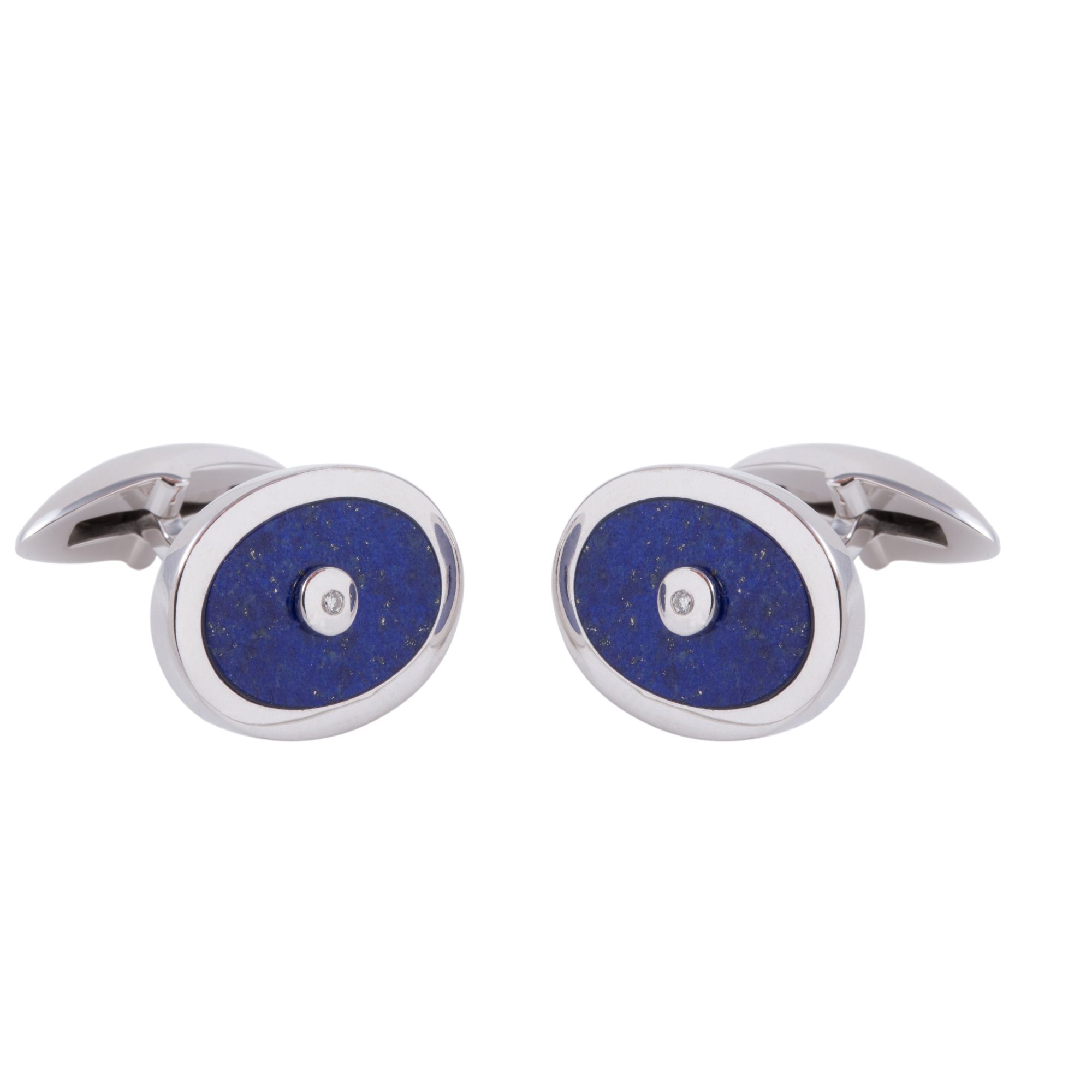 Sterling Silver Oval Lapis Cufflinks with Diamond Centre