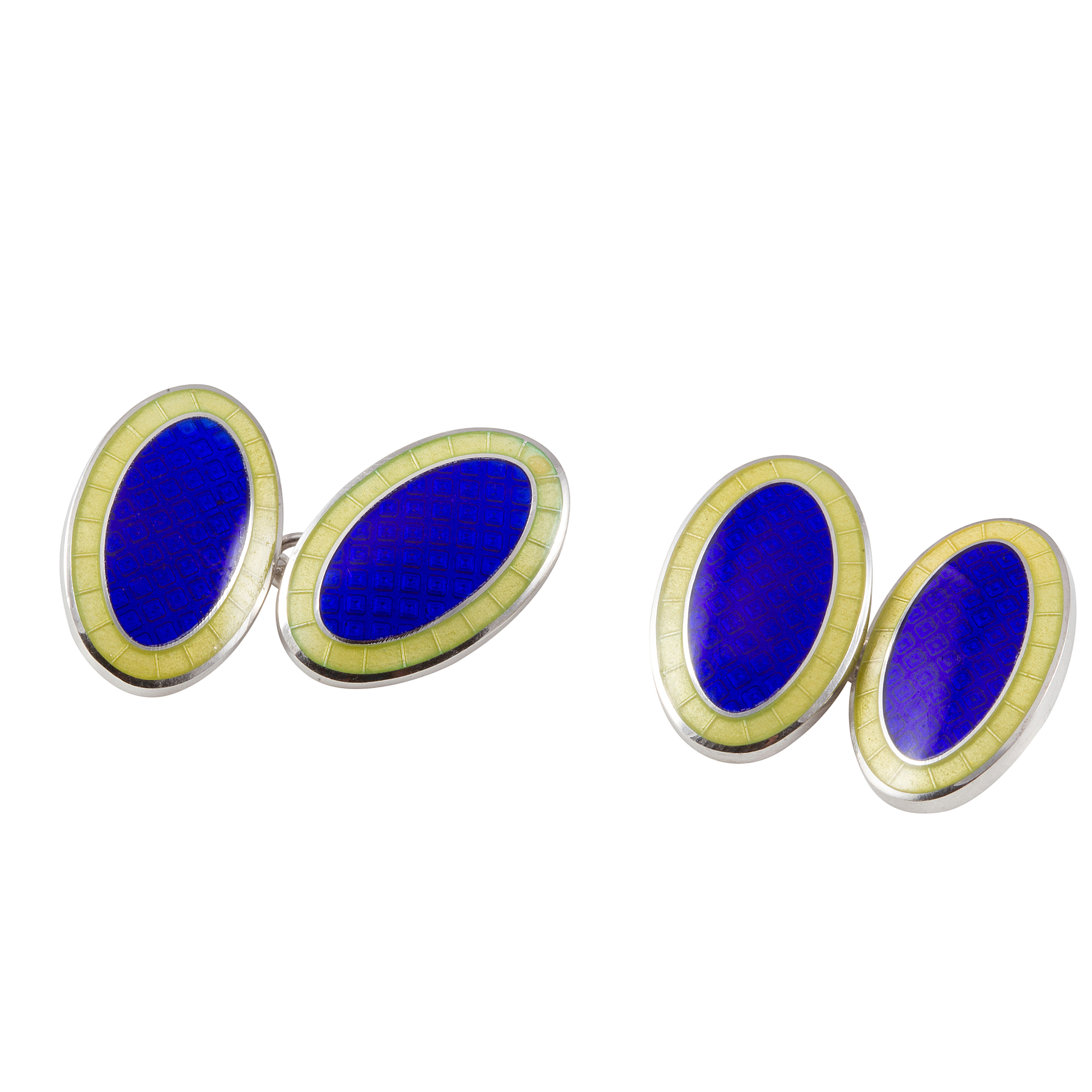Sterling Silver, Yellow & Enamel Oval Cufflinks
