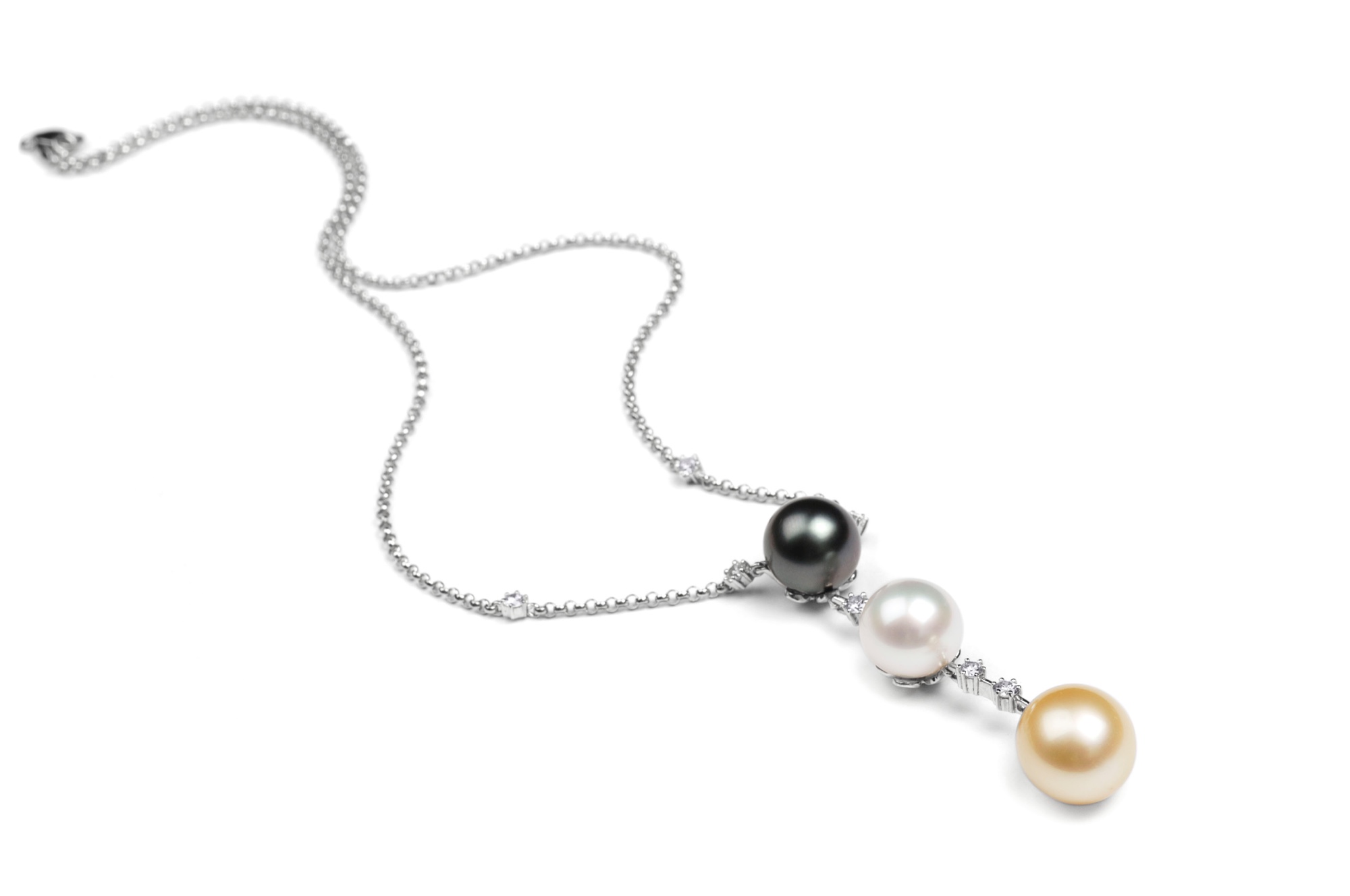 Triple Pearl Drop Pendant with White Gold & Diamond Chain